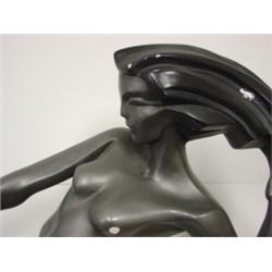 Contemporary Art sculpture of female. Slight crack is left arm at wrist. Some discoloration and paint loss throughout. 28" H, 17" W