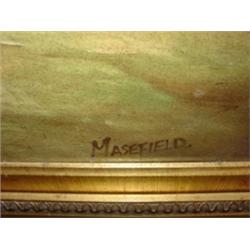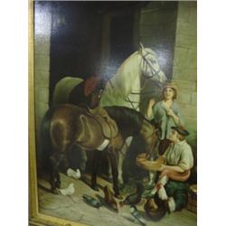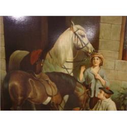 CONTEMPORARY PRINT ON CANVAS OF STABLE SCENE. Signed in lower right "Masefield". 32" x 37.5" framed.