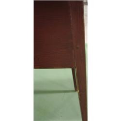 CONTEMPORARY SPLAY LEGGED TABLE. Red painted base. 30" H, 48" L, 11" W
