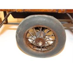 CONTEMPORARY VINTAGE PICK-UP REPLICA. Has stake body. Body is made of wood. Tires are rubber. Very detailed design and construction. 24" L