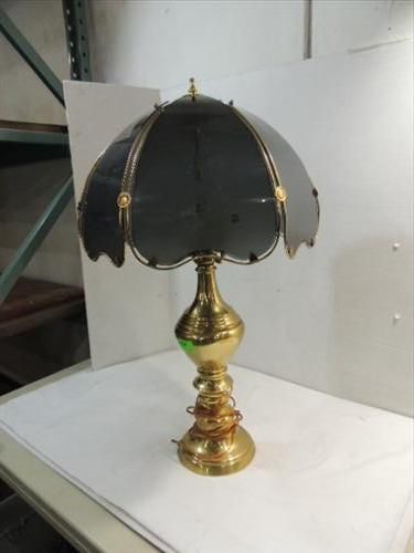 CONTEMPORARY BRASS & GLASS 32"H TABLE LAMP. TOUCH ACTIVATED. AS SHOWN. VIEW PICTURE FOR DETAIL.