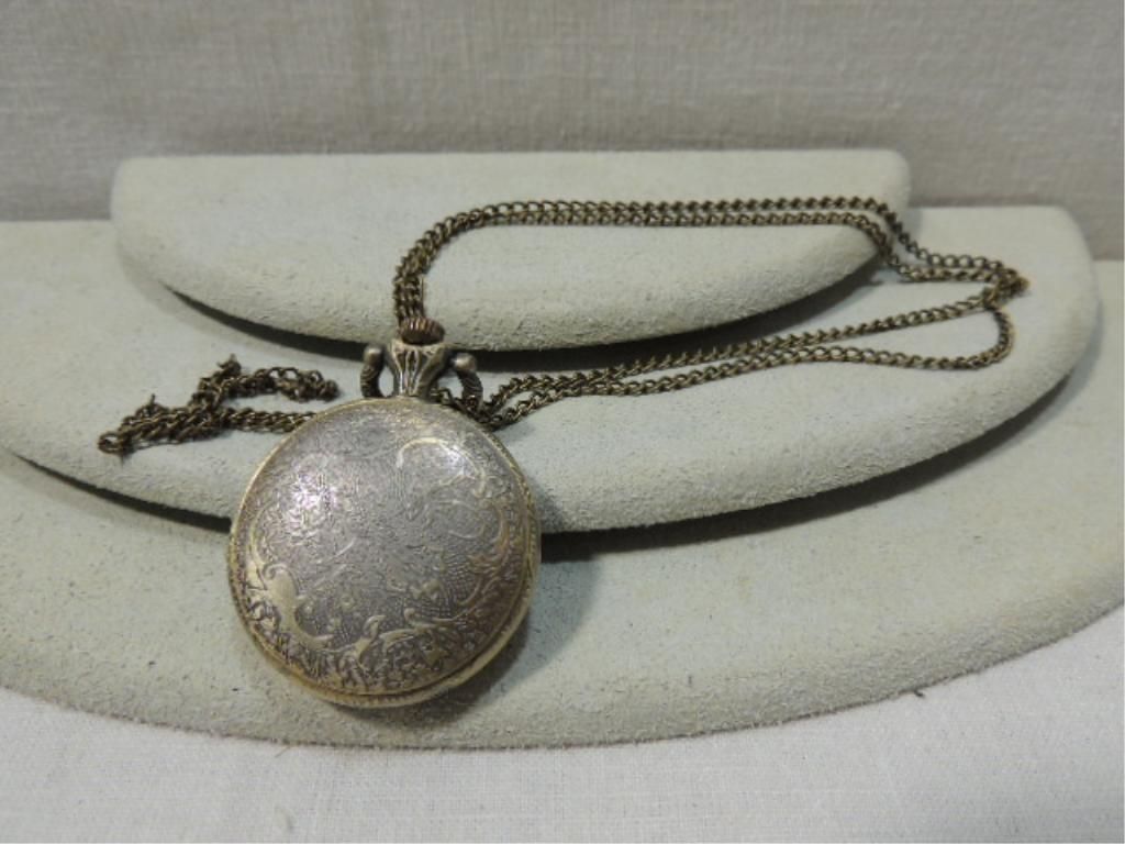 CONTEMPORARY DIE CAST QUARTZ POCKET WATCH. AS SHOWN. VIEW PICTURE FOR DETAIL.