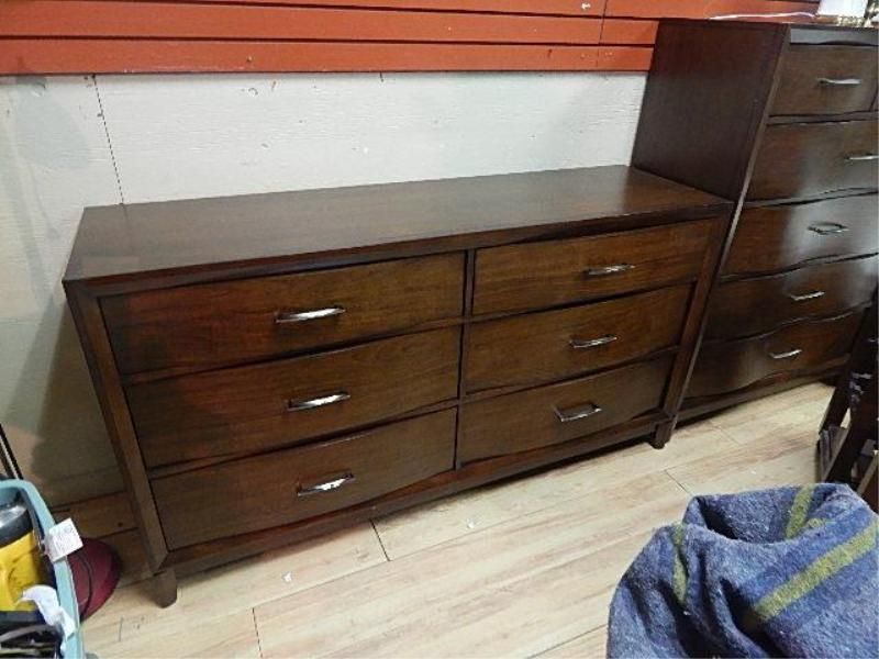 CONTEMPORARY DRESSER - 6 DRAWER BOWED DRAWER FRONTS AND CEDAR DRAWER BASES
