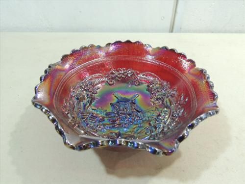 CONTEMPORARY L.E. SMITH PURPLE CARNIVAL GLASS BOWL. WINDMILL PATTERN. AS SHOWN. VIEW PICTURE FOR DETAIL.