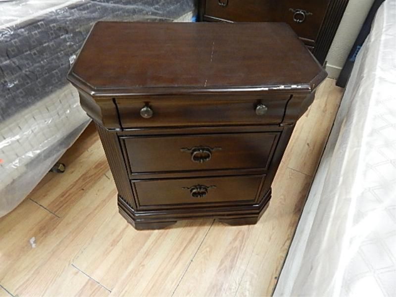 CONTEMPORARY MAHOGANY NITE STAND - 3 DRAWER AS-IS
