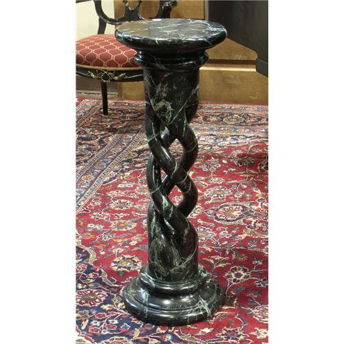 PEDESTAL: Contemporary/modernistic black and green marble round pedestal. 32''h x 12''diameter