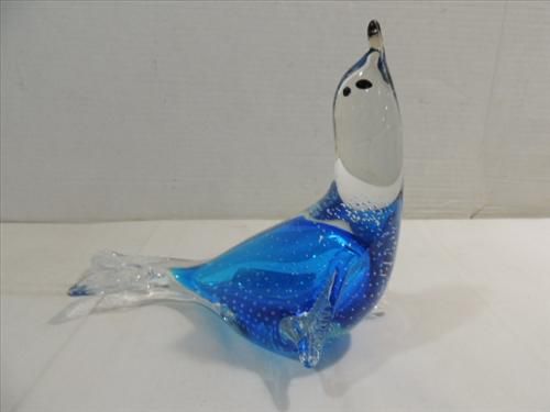 CONTEMPORARY MURANO STYLE BLUE GLASS SEAL. 9.5"L. AS SHOWN. VIEW PICTURE FOR DETAIL.