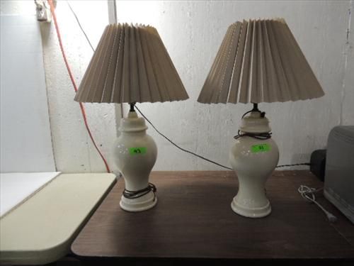 CONTEMPORARY PAIR CERAMIC BASE READING LAMP & SHADES. 28"H. AS SHOWN. VIEW PICTURE FOR DETAIL.