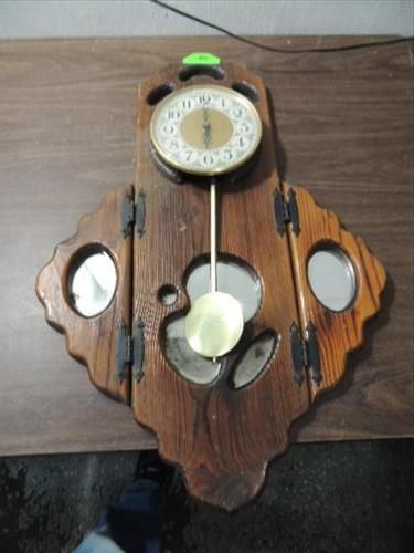 CONTEMPORARY PINE WOOD 29"L WALL MOUNT CLOCK. AS SHOWN. VIEW PICTURE FOR DETAIL.