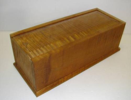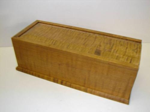CONTEMPORARY TIGER MAPLE SLIDE-LID CANDLE BOX. Nailed construction. 13.25” Long.