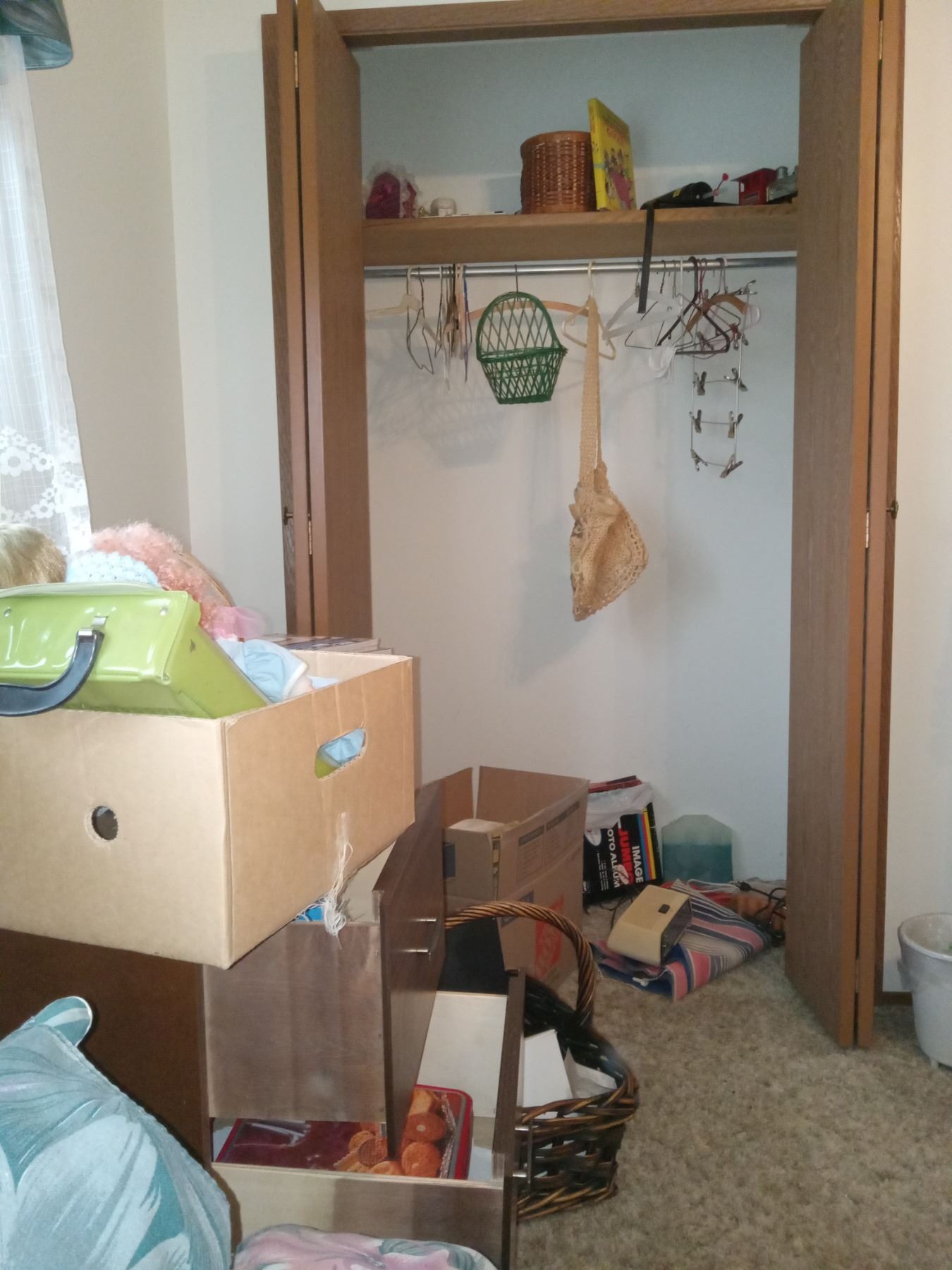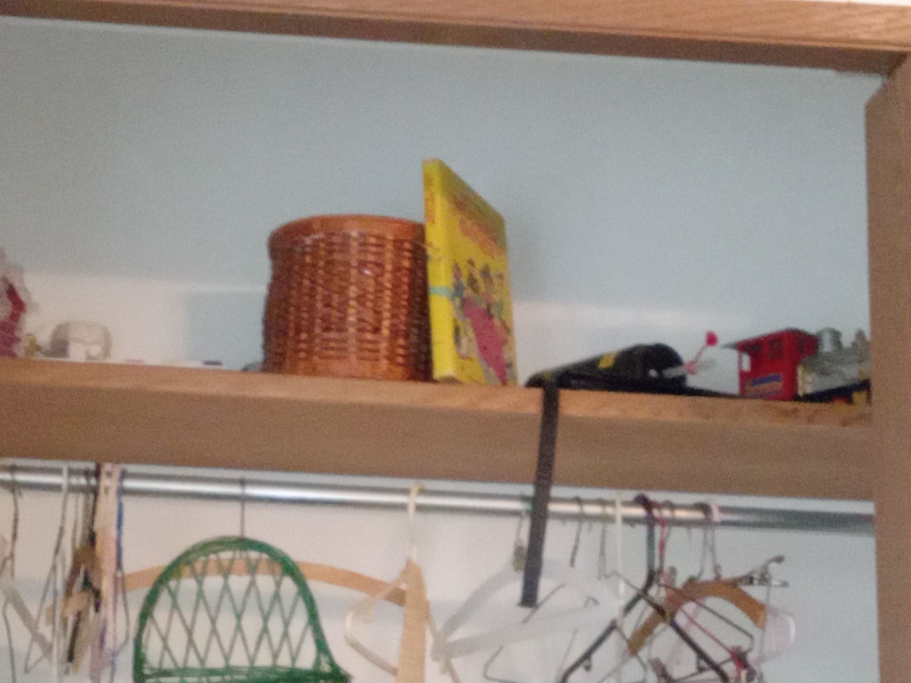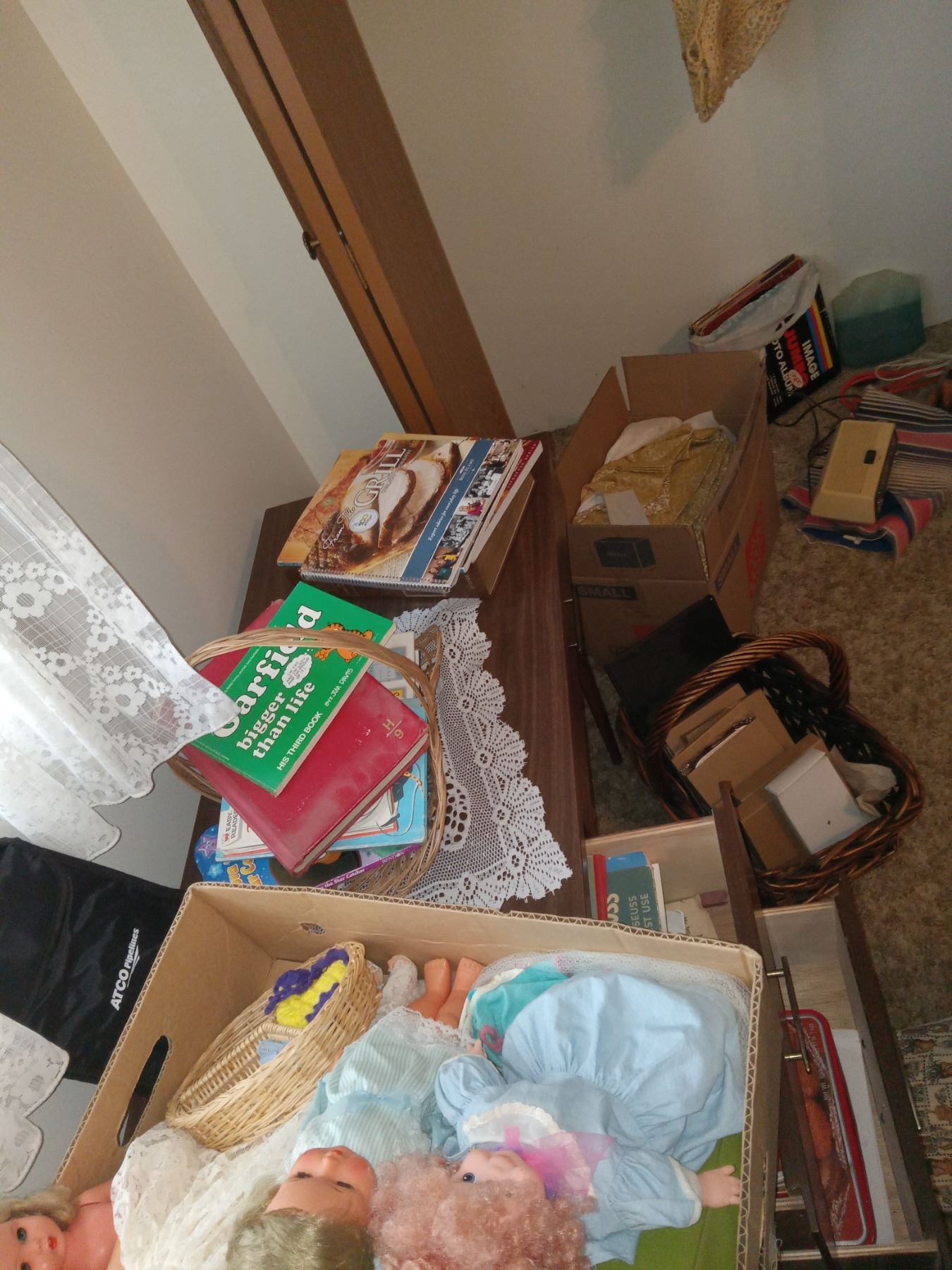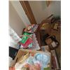 CONTENT OF & AROUND DESK & CLOSET, INCLUDES BOOKS, DOLLS, RECORDS, WINDOW COVERS & HANGERS. EXCLUDES: DESK.