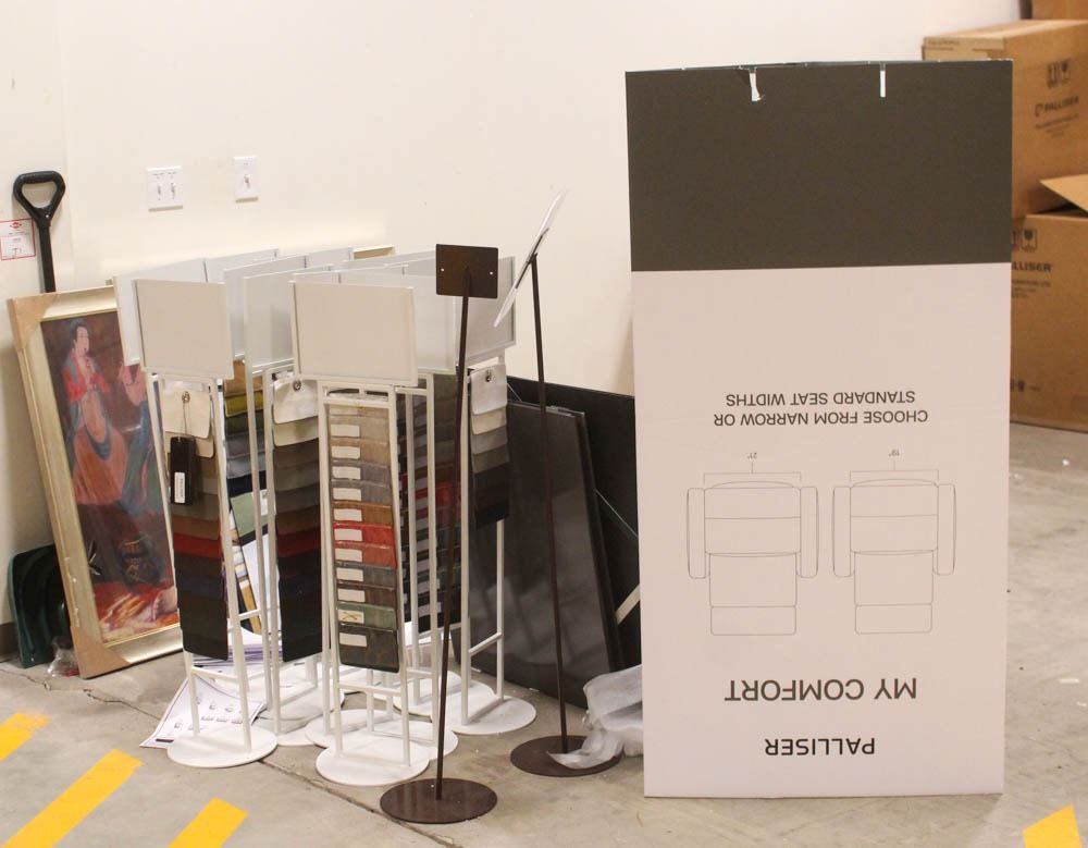 OUTDOOR LETTER SIGNAGE/ SHELVING/ NEW FURNITURE PARTS/ HARDWARE/ SWATCHES/ FURNITURE LEFTOVER/ ETC.