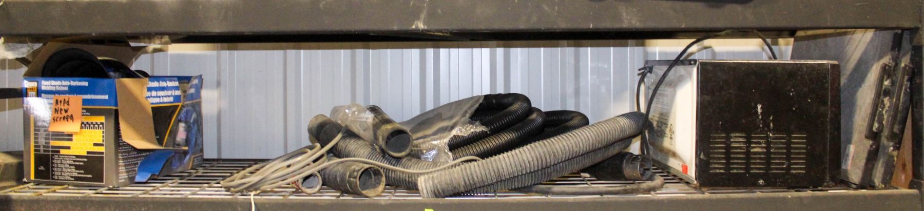 CONTENTS OF SHELF INCL: WELDING HELMET, VACUUM