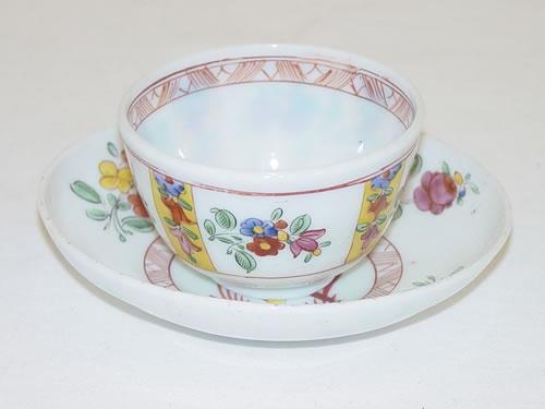 CONTINENTAL BRISTOL TYPE DECORATED HANDLELESS CUP & SAUCER W/ BIRDS & FLOWERS