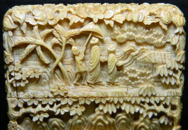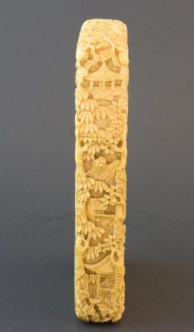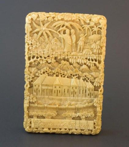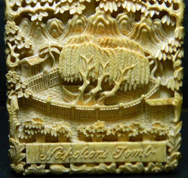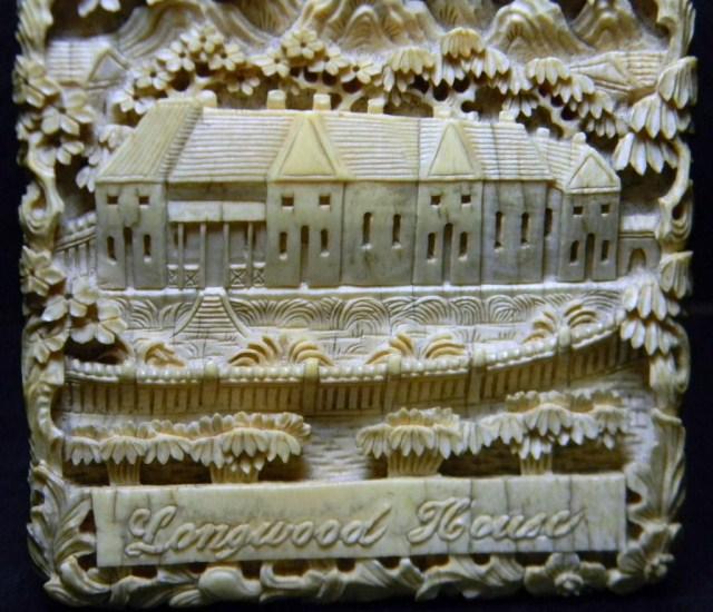 Extremely intricate 3 dimensional hand carved design 19th century. Depicts The Longwood House and Napoleon's tomb. Amazing detail. Measures 4 5/8" height x 3 1/8" width x 7/8" depth. No breaks, chips or repairs. Some age cracks.