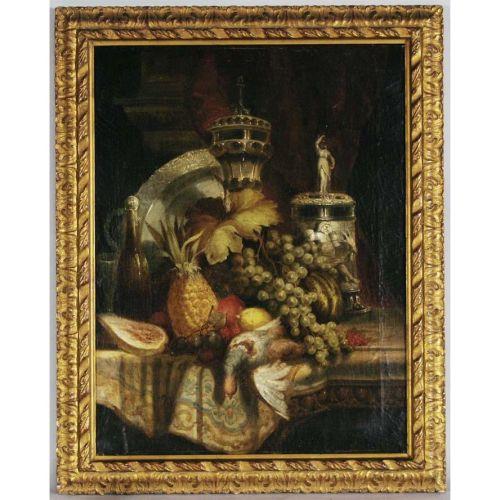CONTINENTAL STILL LIFE with game, fruit, tank