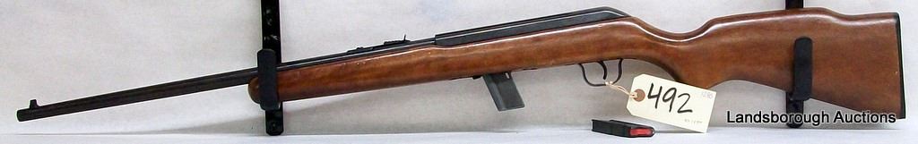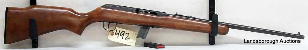 NON RESTRICTED SEMI AUTO .22LR, 20 1/4" BARREL, S/N CA131316. WOOD IS GOOD WITH SOME WEAR AND SHALLOW SCRATCHING, BLUING IS HAS SOME LIGHT PITTING, BORE IS EXCELLENT. COMES WITH ADDITIONAL MAG