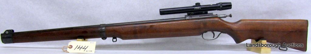 NON-RESTRICTED, SINGLE SHOT, 22LR, 27" BARREL, SN NONE. WOOD HAS SOME SCRATCHES AND MARKS, BLUING IS BROWN, BORE EXCELLENT. COMES WITH BUSHNELL 4X SCOPE.