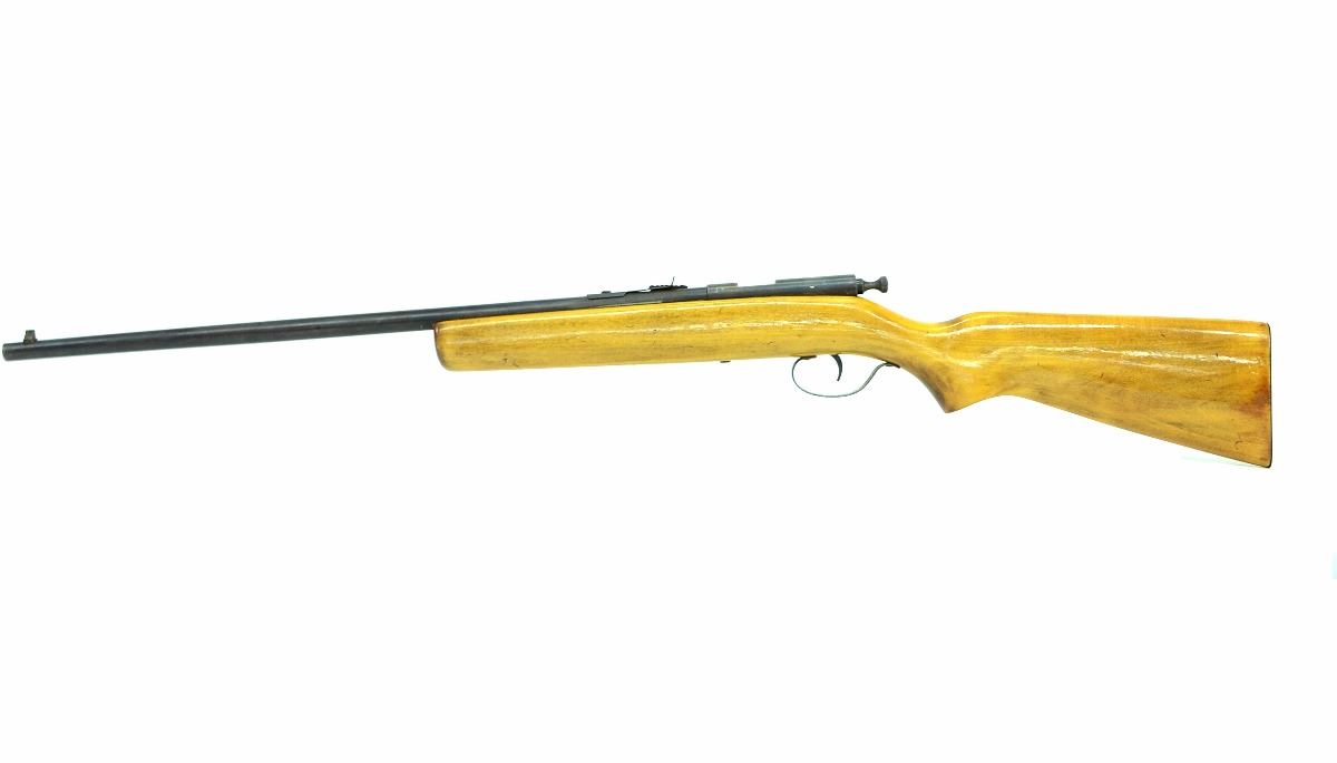 STOCK 330R-0021-G1, COOEY, MODEL 39, CAL .22LR, BOLT ACTION SINGLE SHOT, BARREL LENGTH 22", ADJUSTABLE IRON SIGHTS, MADE IN CANADA, CONDITION 7/10, SN. NA