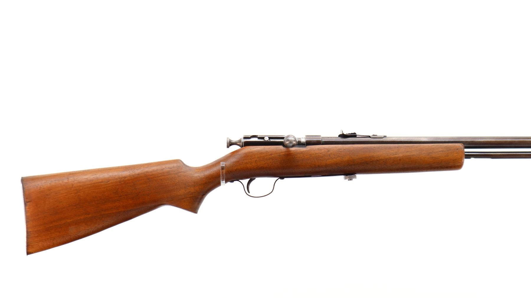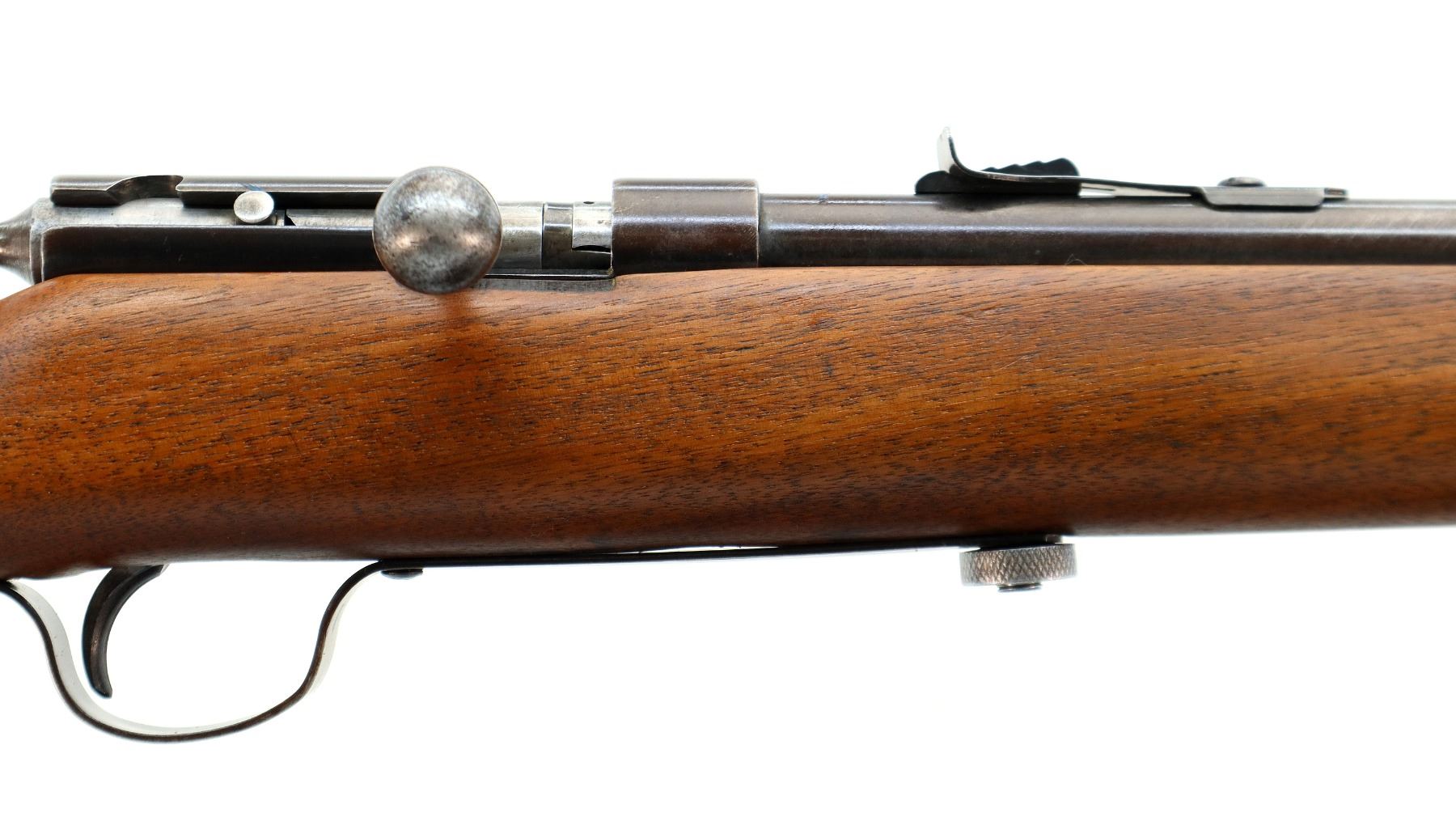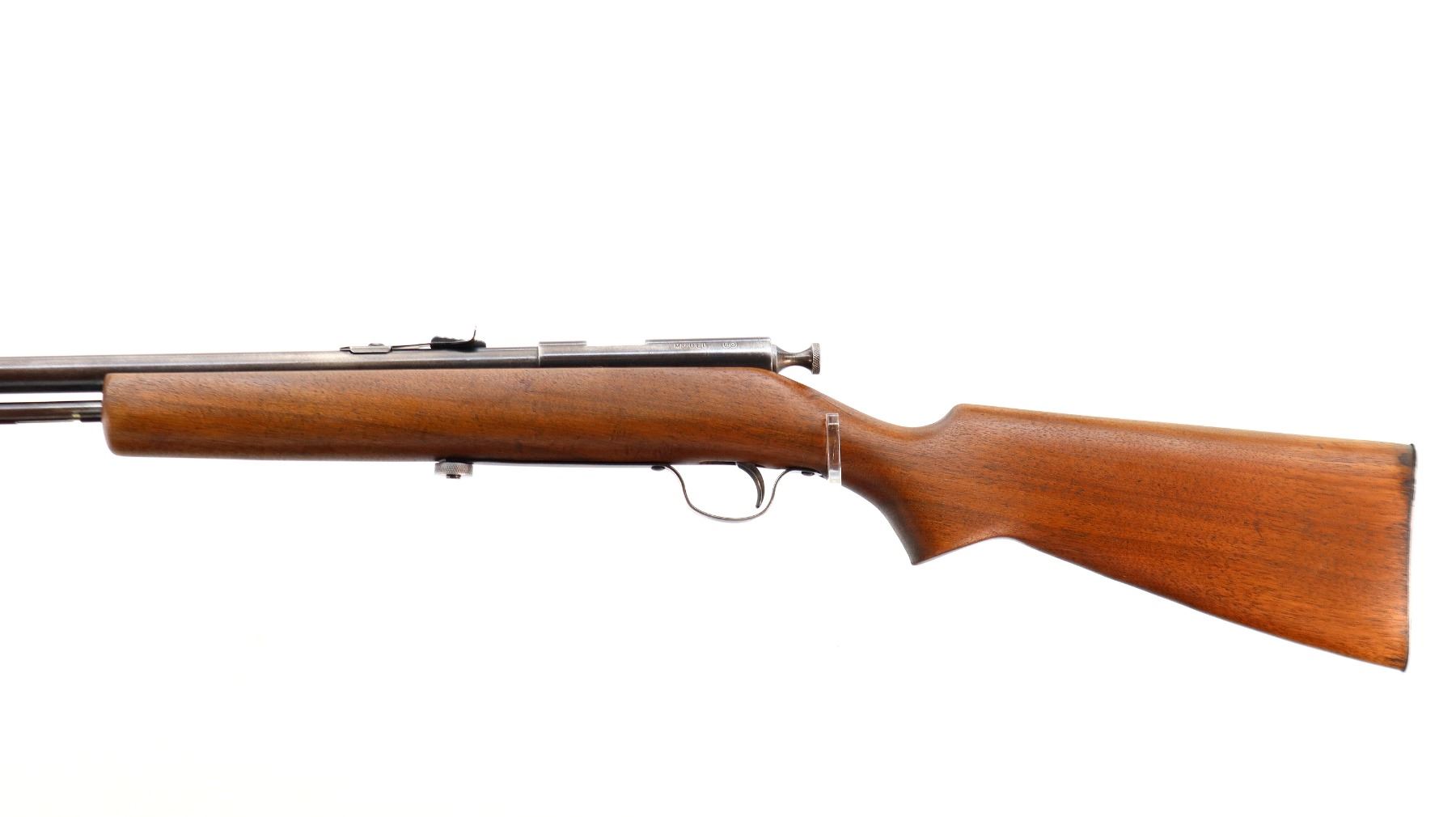 Main Description: Blade front sight, adjustable u notched rear sight, grooved bolt knob. One piece wood stock, pistol grip, smooth steel butt plate