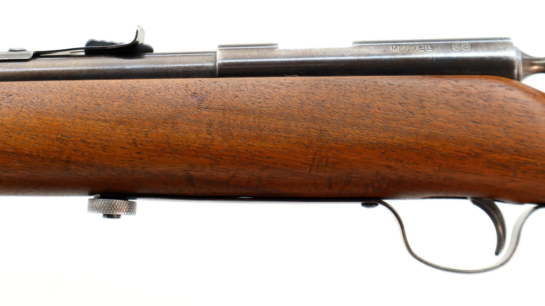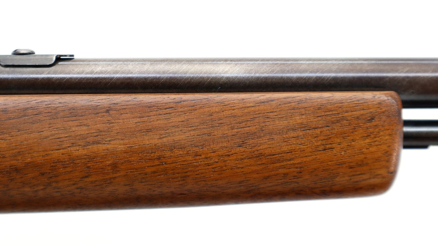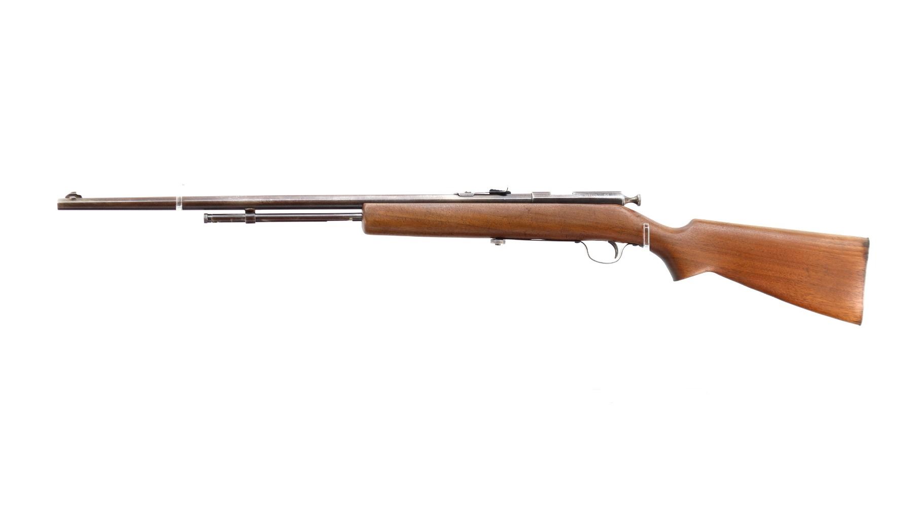 Main Description: Blade front sight, adjustable u notched rear sight, grooved bolt knob. One piece wood stock, pistol grip, smooth steel butt plate