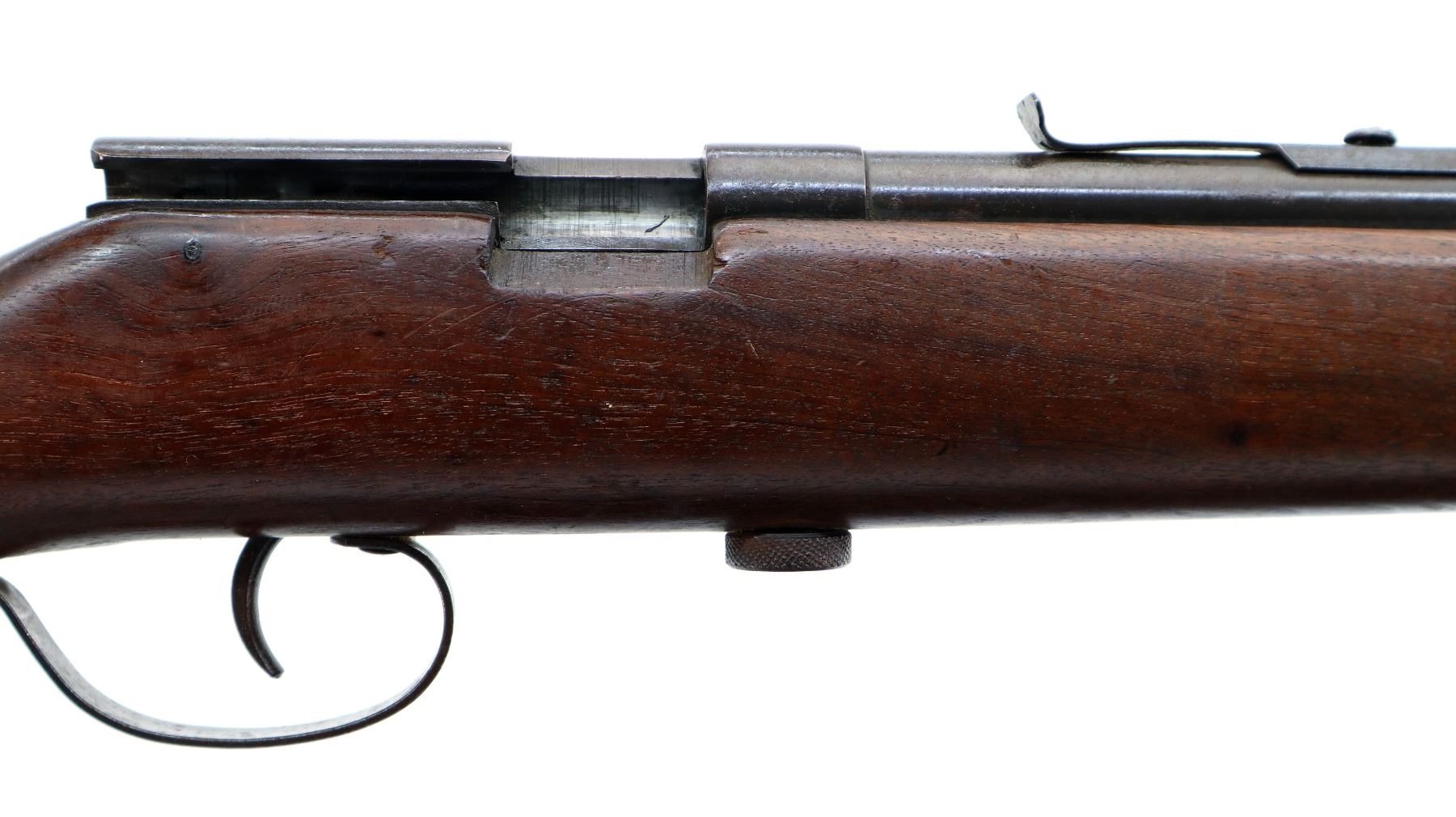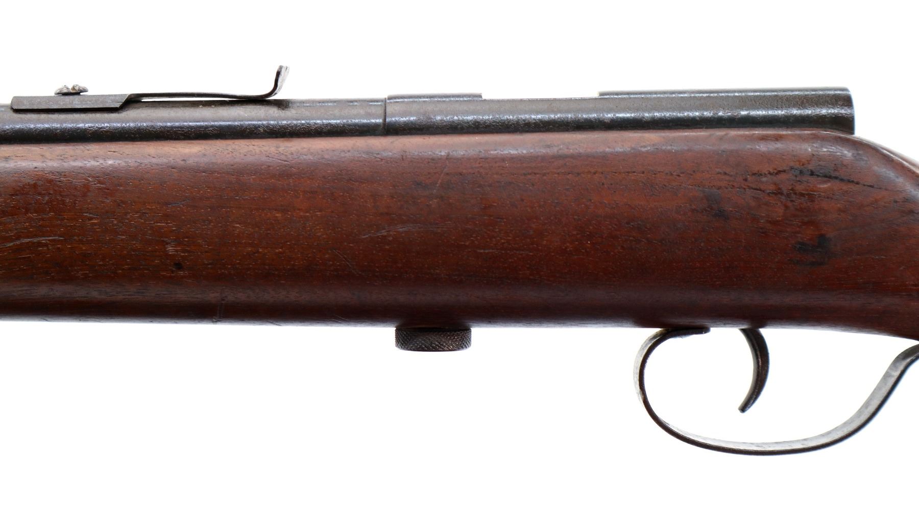 Main Description: Blade front sight, u notched rear sight missing elevator, missing complete bolt assembly. One piece wood stock, forend tip is cracked, pistol grip, smooth steel butt plate, missing sling swivels holes are present.