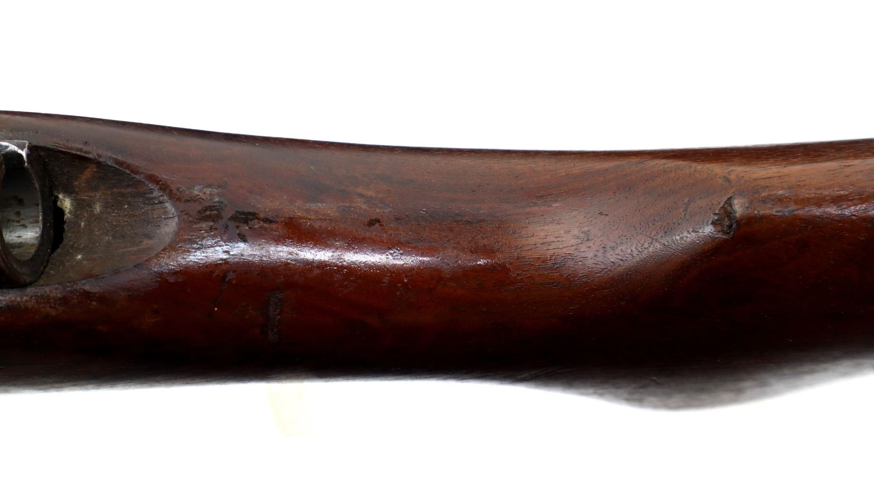 Wear: Metal finish turning brown with pitting, rust, scratches, handling marks and wear. Stock shows marks, scratches and wear.
