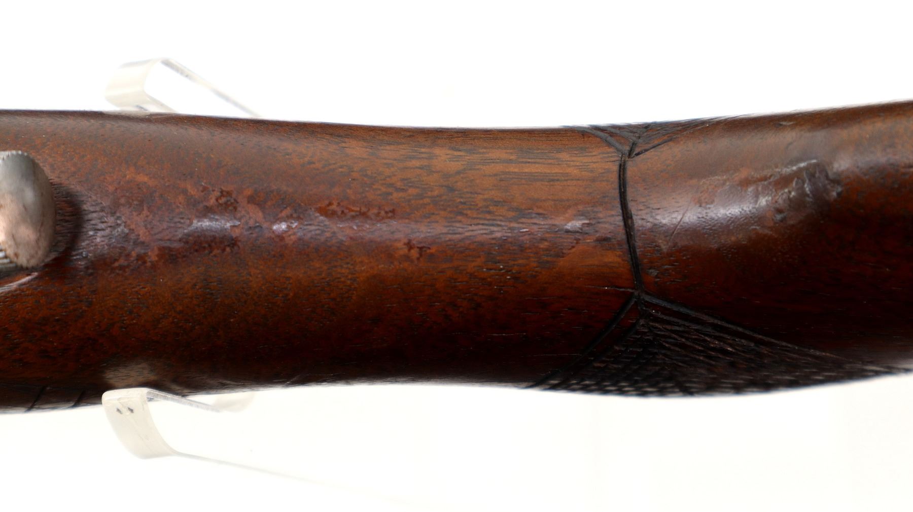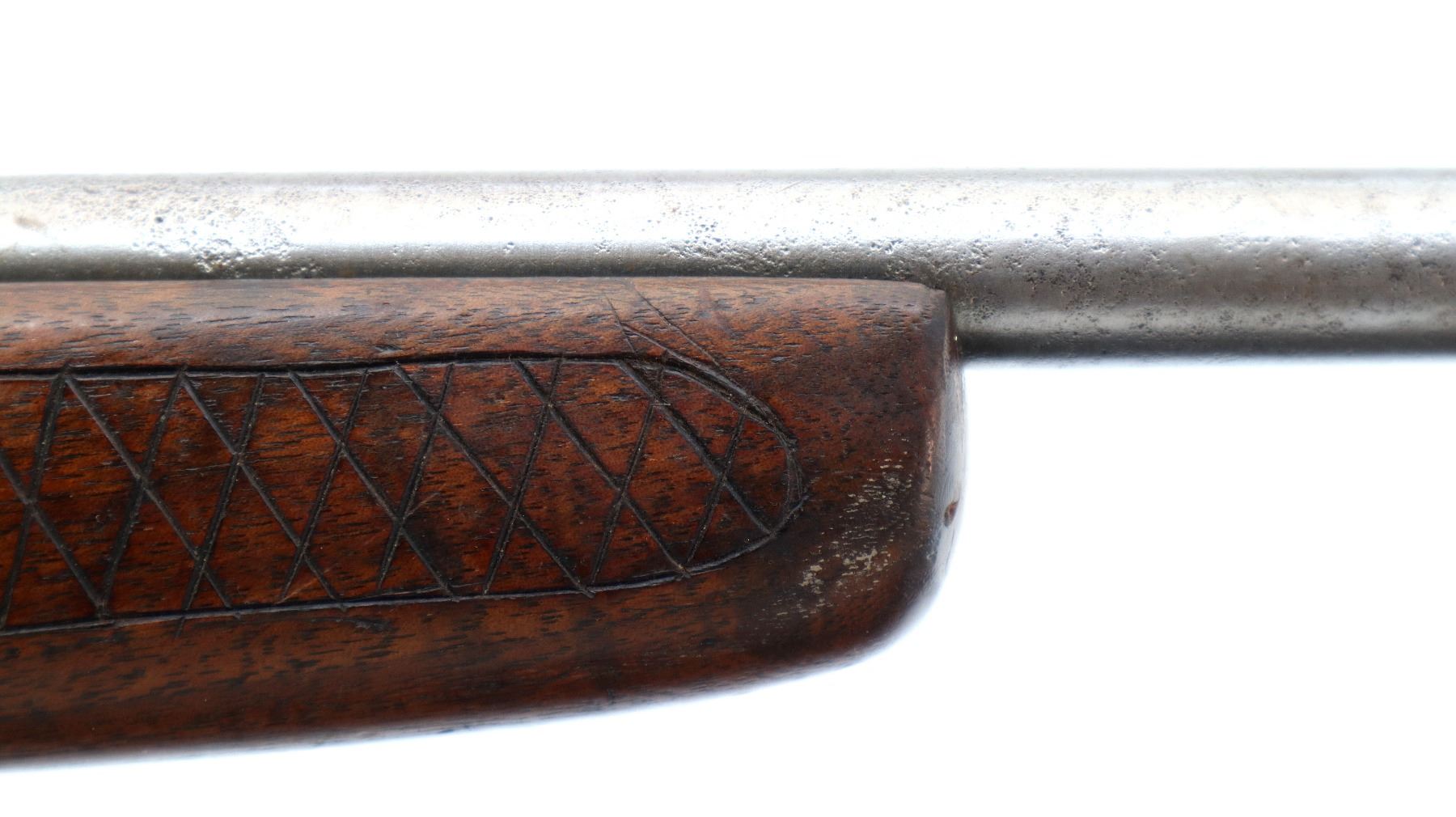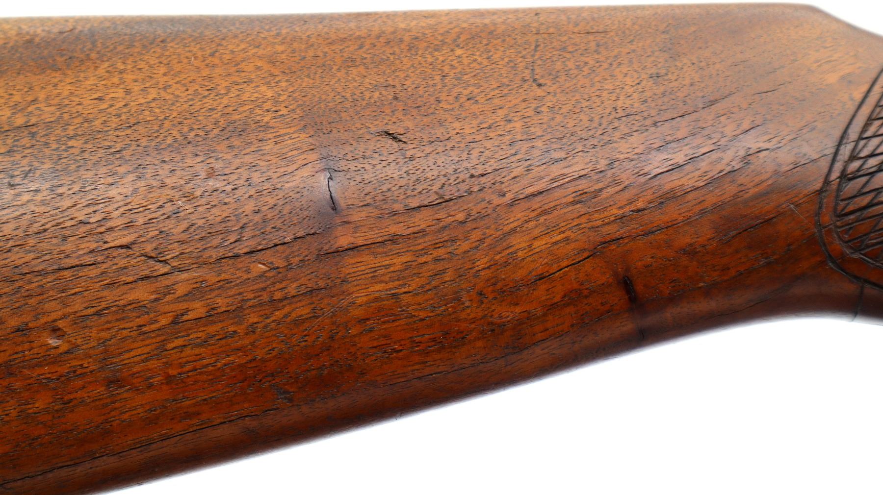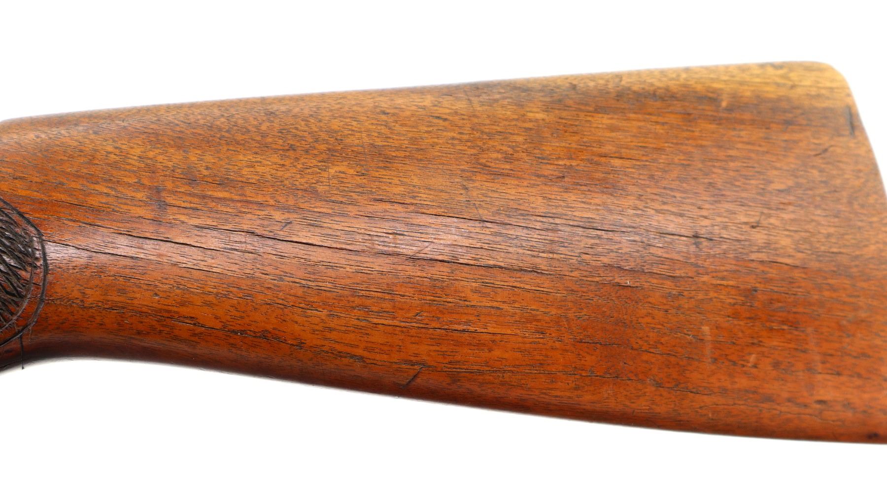 Wear: Metal finish turning silver grey with pitting, scratches, handling marks and wear. Stock shows some marks, scratches and wear.