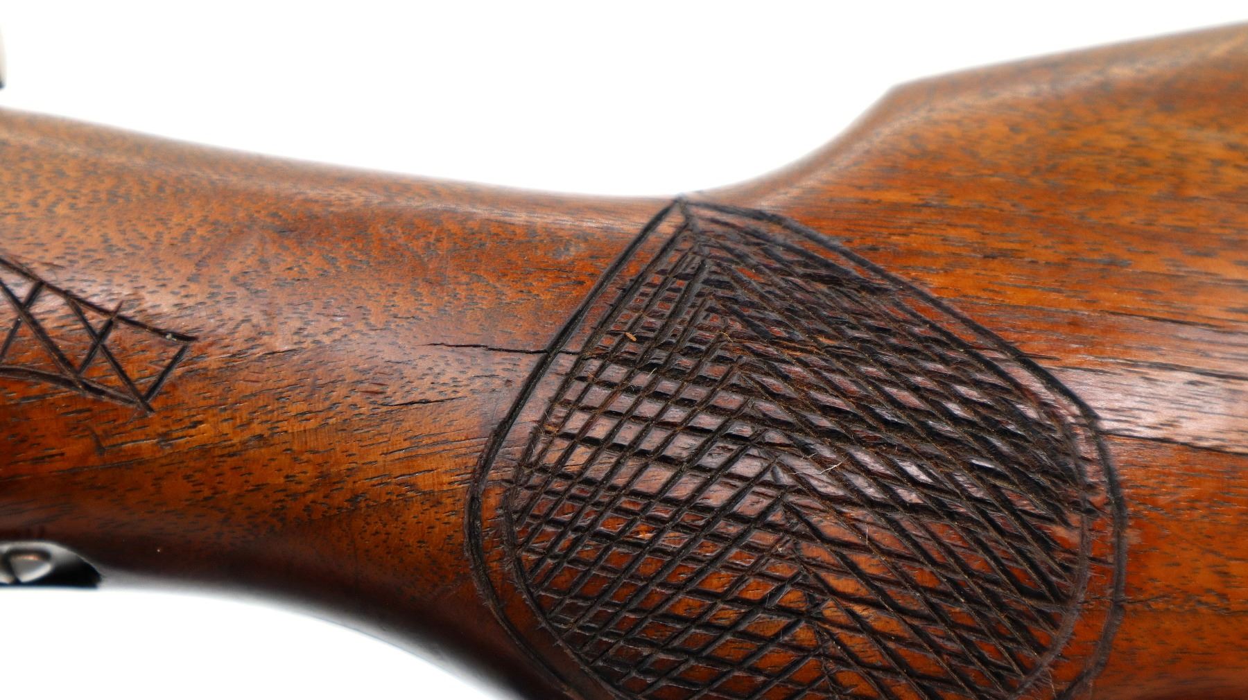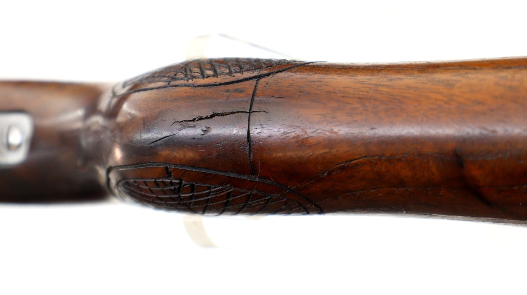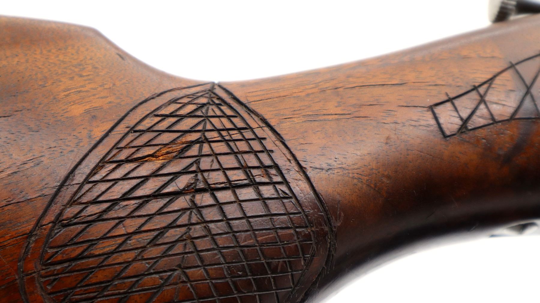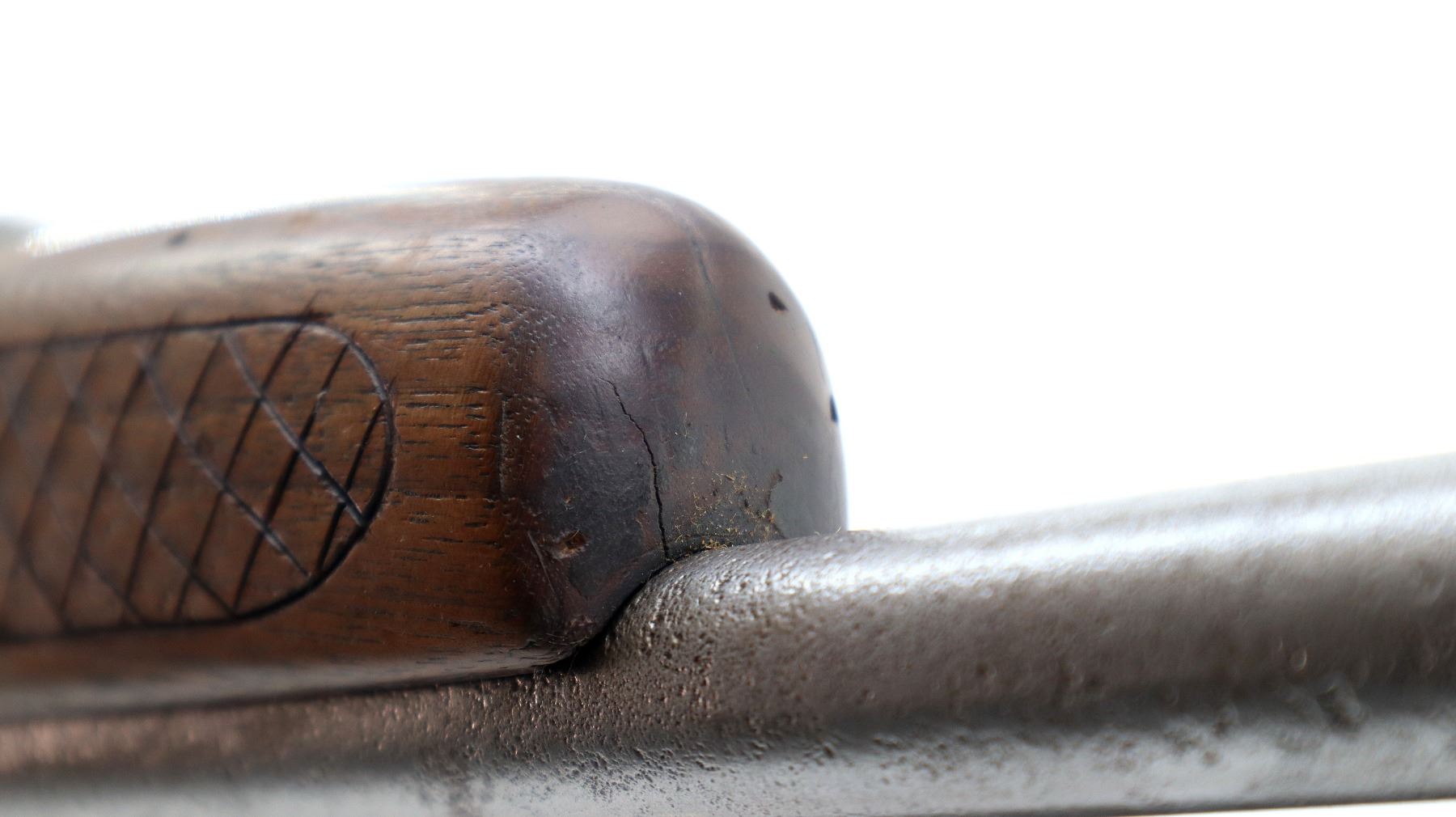 Wear: Metal finish turning silver grey with pitting, scratches, handling marks and wear. Stock shows some marks, scratches and wear.