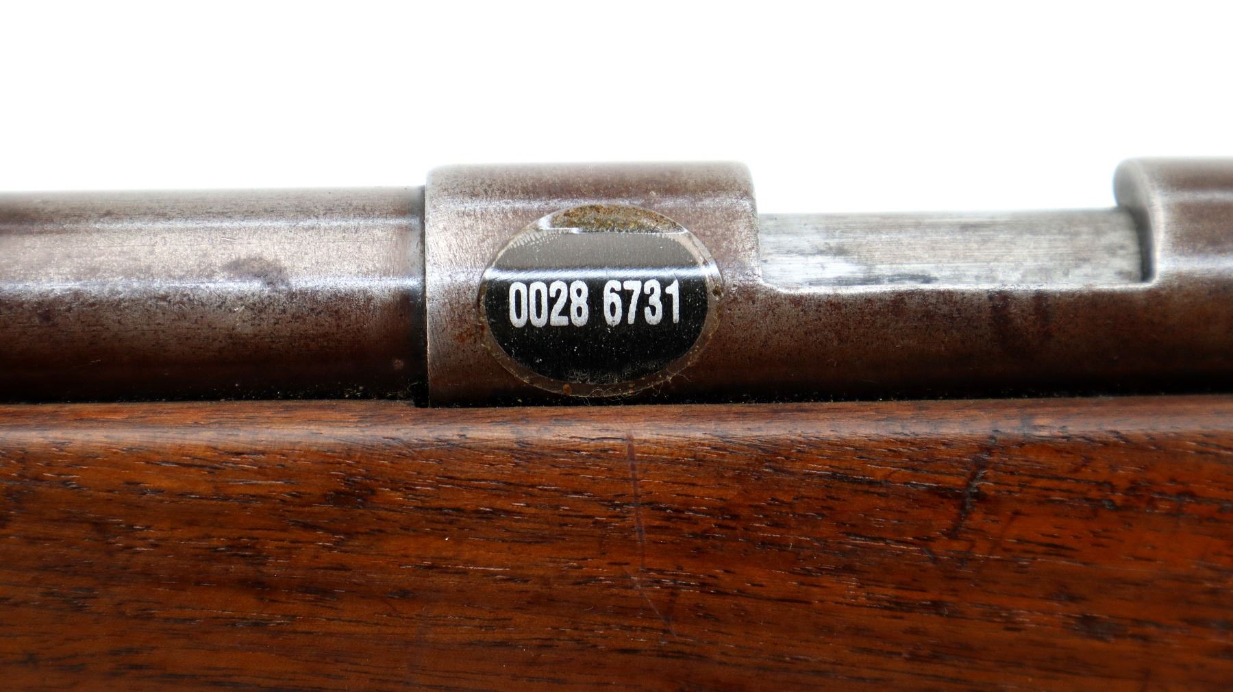 Wear: Metal finish turning brown with light rust speckles, scratches, handling marks and wear. Stock shows marks, scratches and wear.