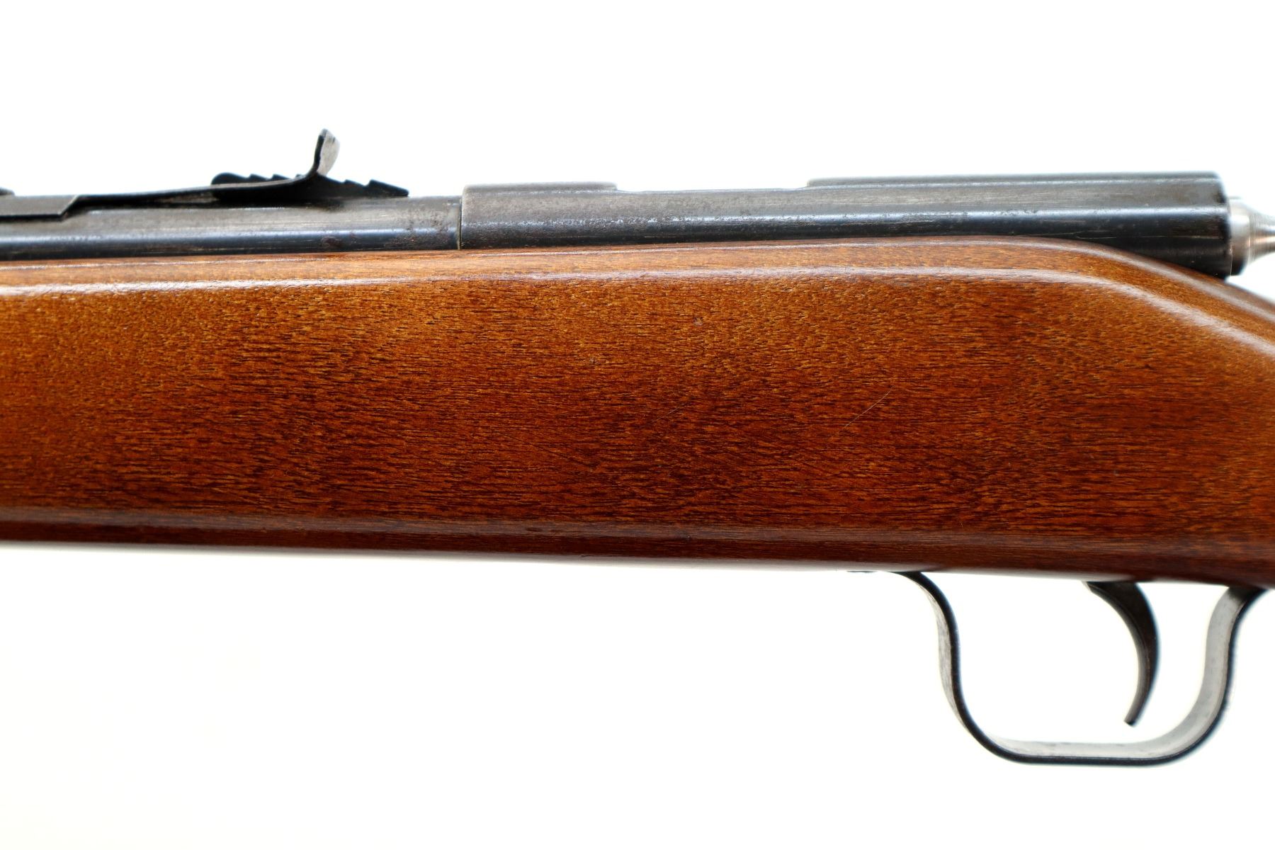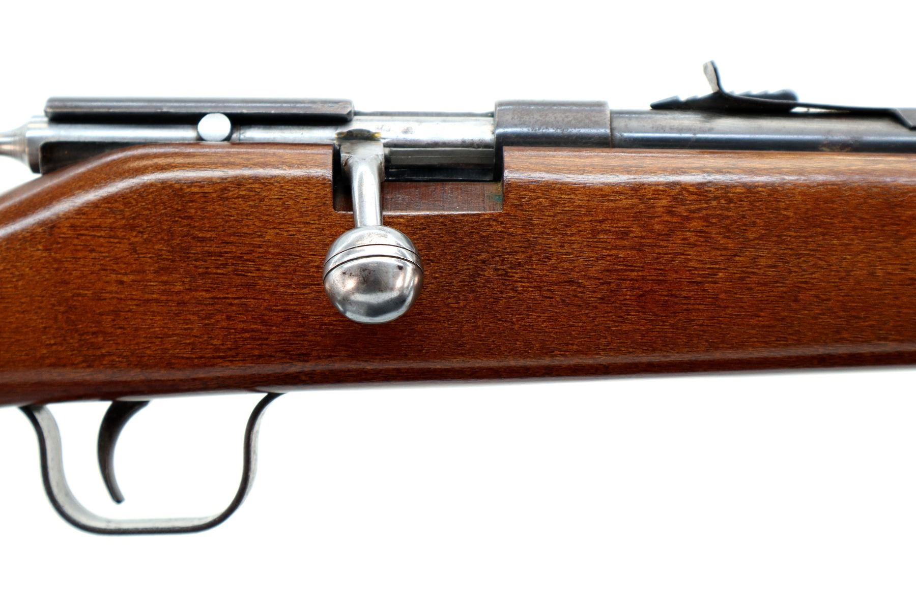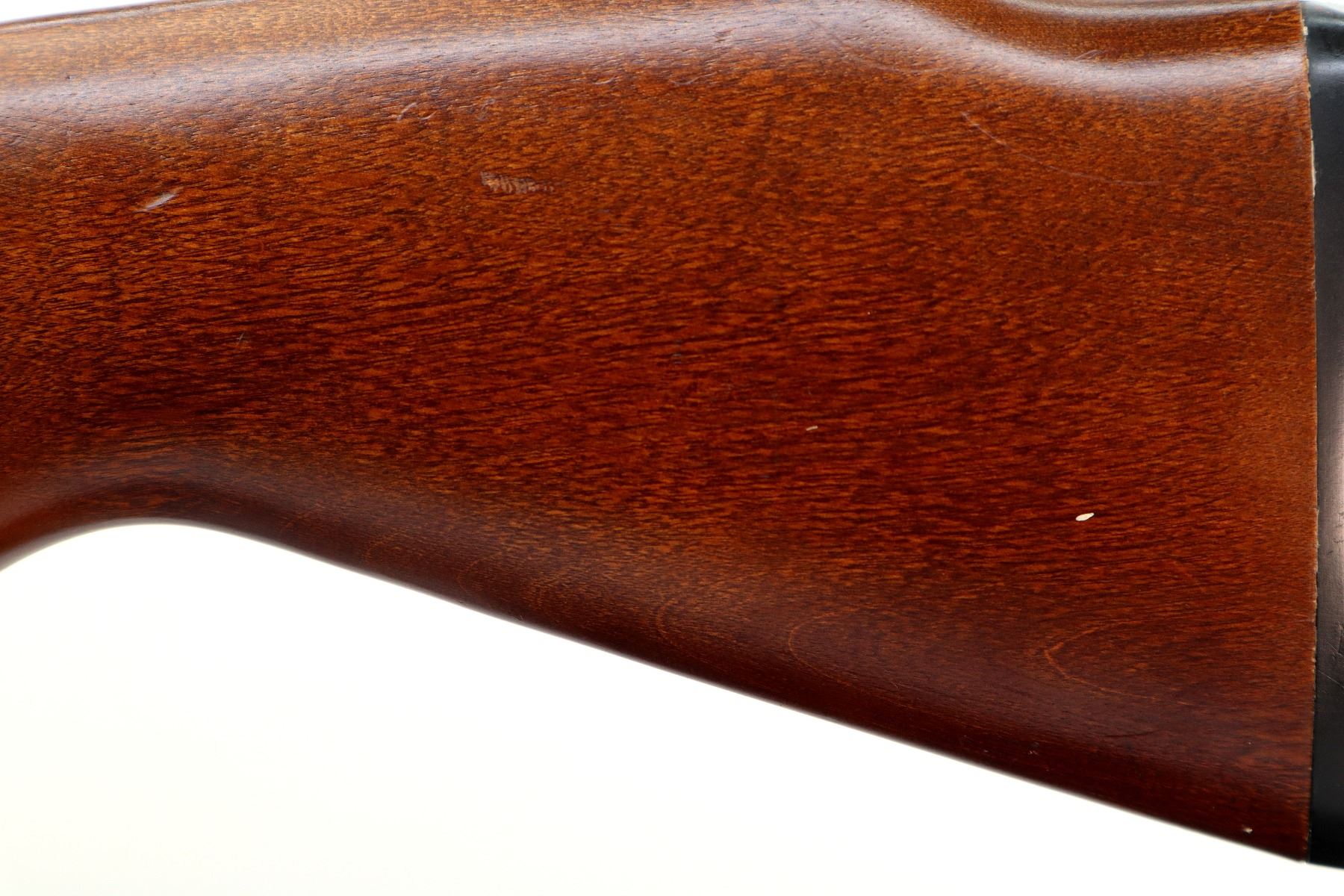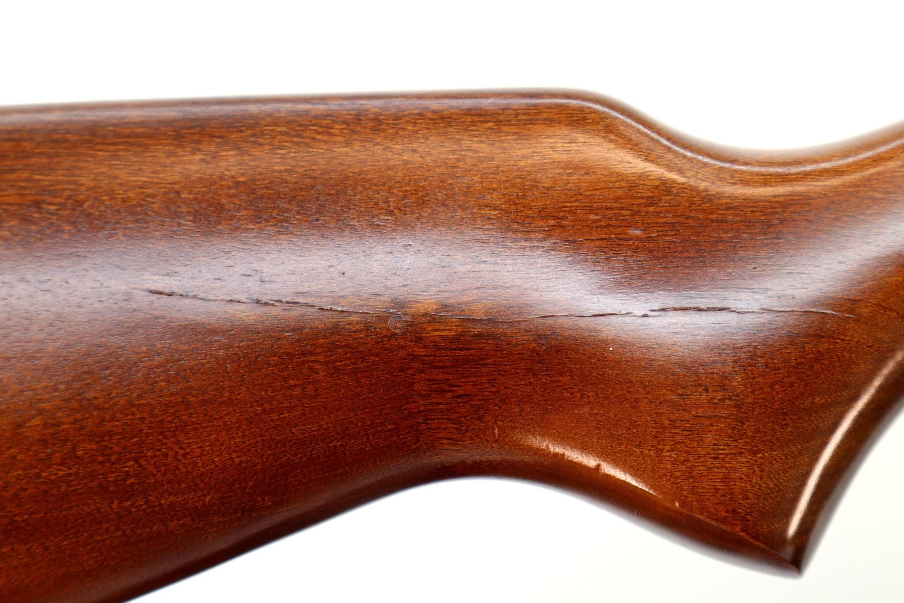 Main Description: Blade front sight, adjustable u notched rear sight, grooved bolt knob, extractor is present. One piece wood stock, pistol grip, raised comb, grooved black polymer butt plate, 12.5" LOP