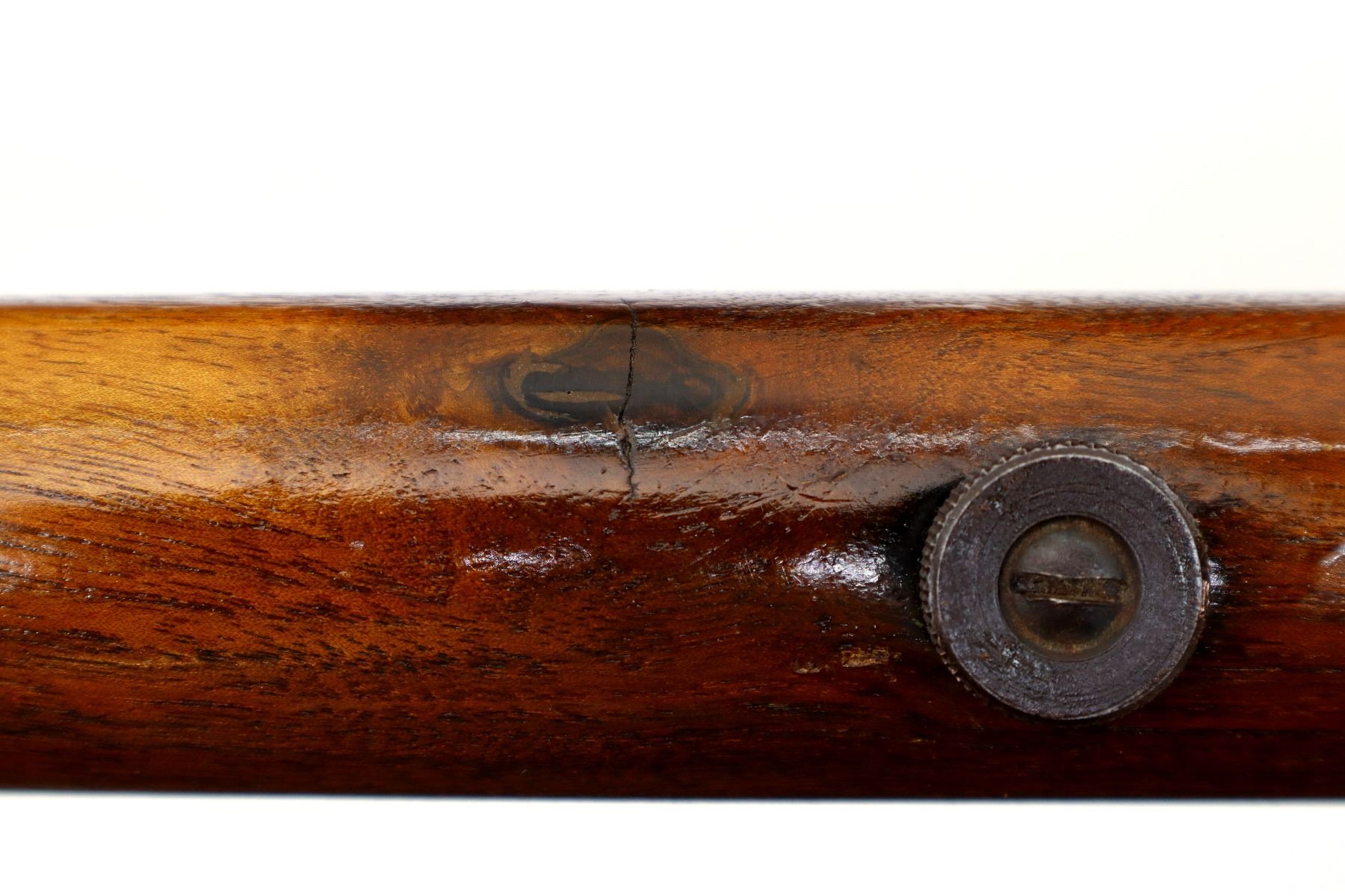 Main Description: Blade front sight, u notched rear sight missing elevator, blued finish, missing complete bolt assembly. One piece wood stock, pistol grip, missing butt plate and screws.