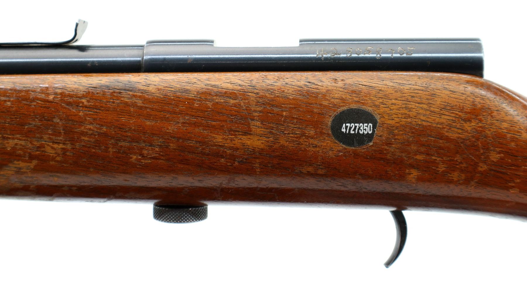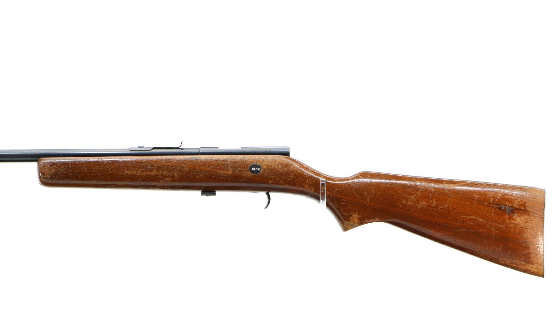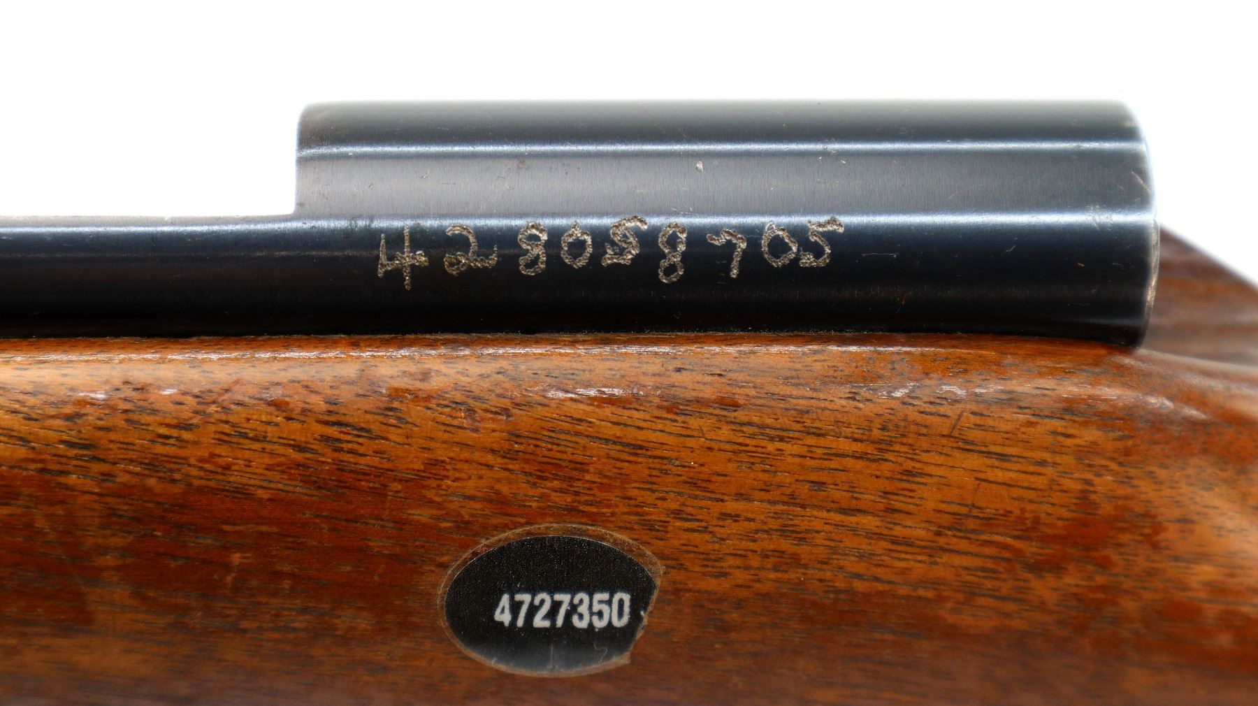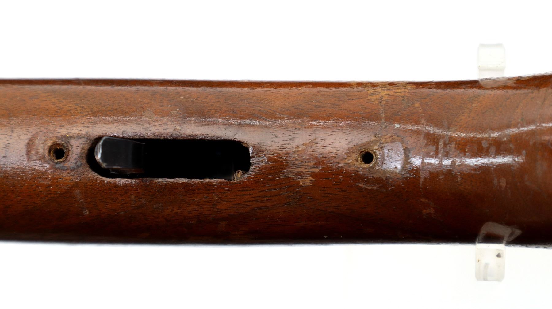 Main Description: Blade front sight, u notched rear sight missing elevator, blued finish, receiver etched with number 428058705, missing complete bolt assembly. One piece wood stock, pistol grip, smooth steel butt plate, missing trigger guard and screws.