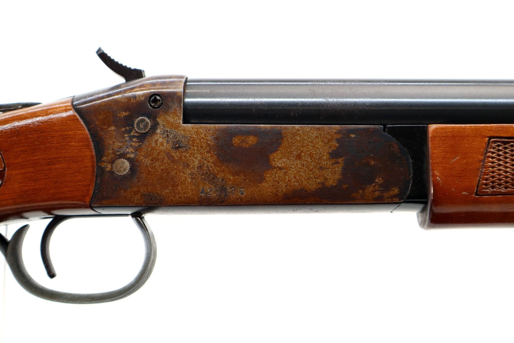 Wear: Metal finish shows some light rust speckles, scratches, handling marks and wear. Stocks show some marks, scratches and wear.