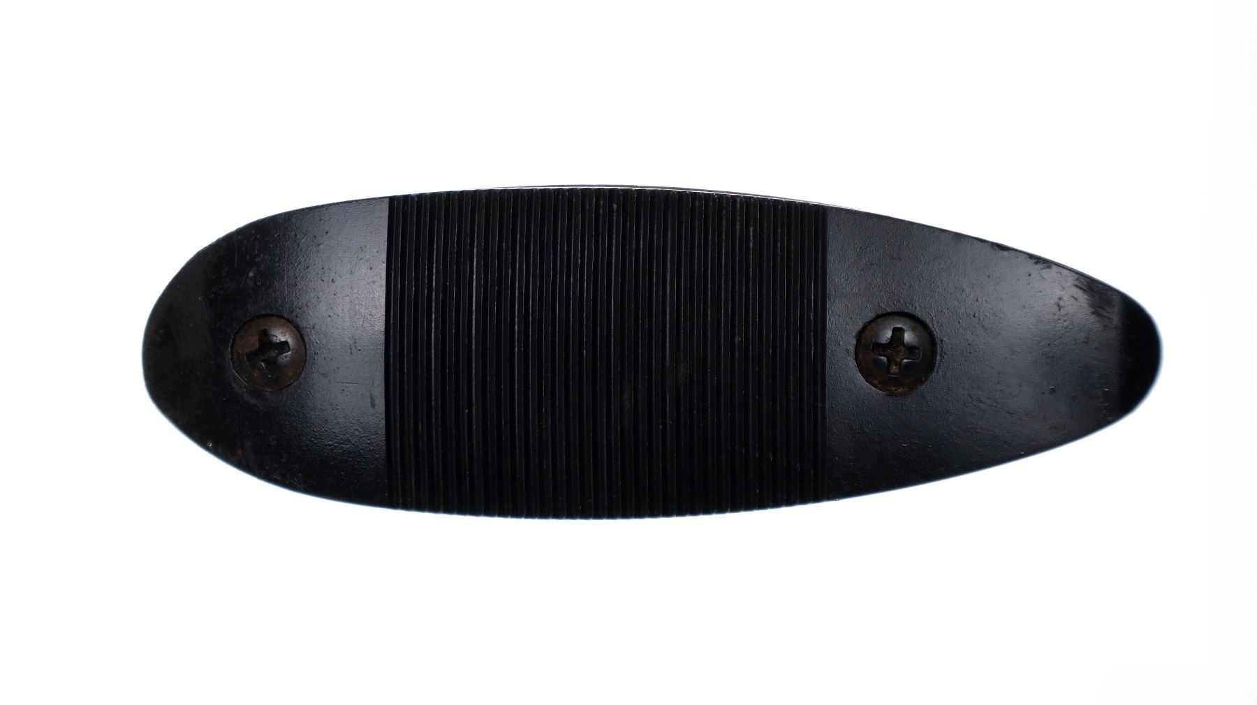 Main Description: Brass bead, blued finish, grooved spur hammer, ejector. Two piece wood stocks, checkered forearm and pistol grip, small crack behind upper tang, grooved black polymer butt plate