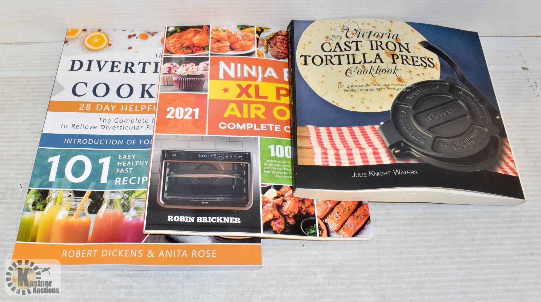 COOK BOOK LOT INCLUDING CAST IRON , NINJA &