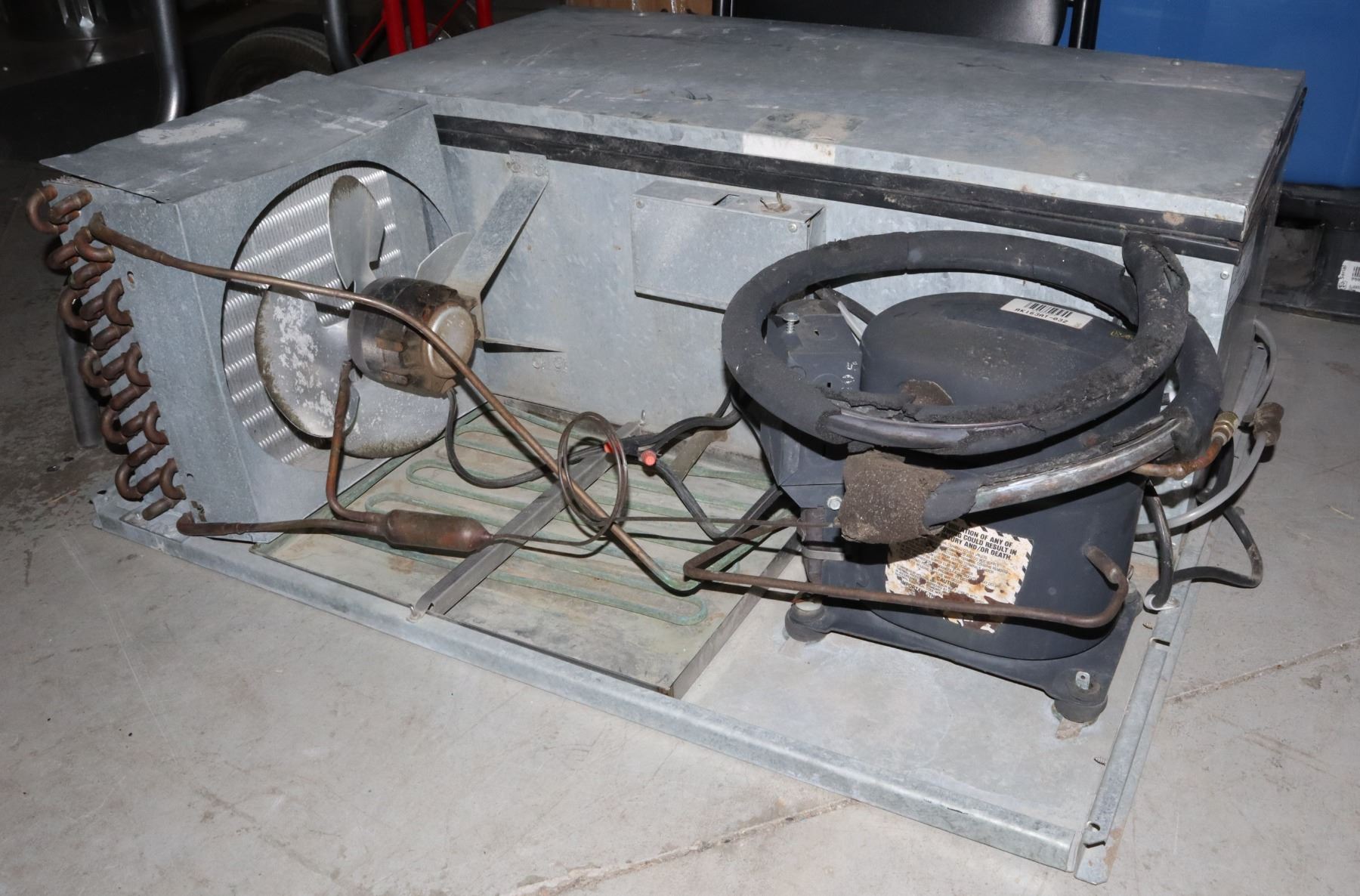 COOLER UNIT FOR PARTS/ REPAIR. COMPRESSOR IS SEPARATE RIGHT NOW AND WAS WORKING WHEN REMOVED FROM UNIT. APPROX 80" TALL. MAY BE STORED OUTSIDE IF ROOM IS NEEDED IN THE BUILDING