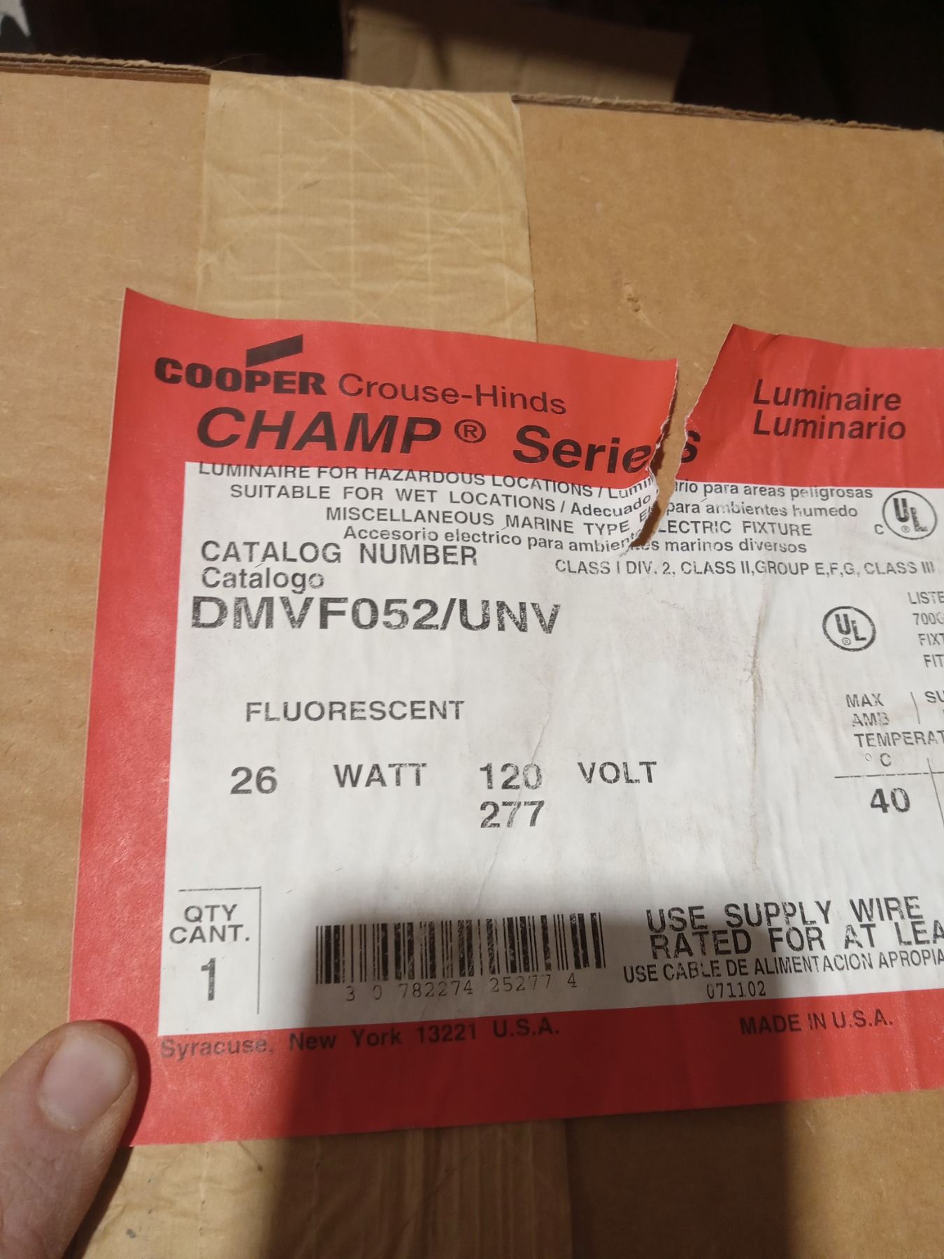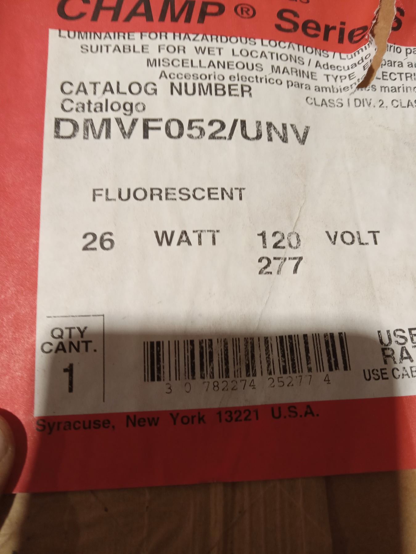 COOPER CHAMP SERIES LAMP FIXTURE IN BOX