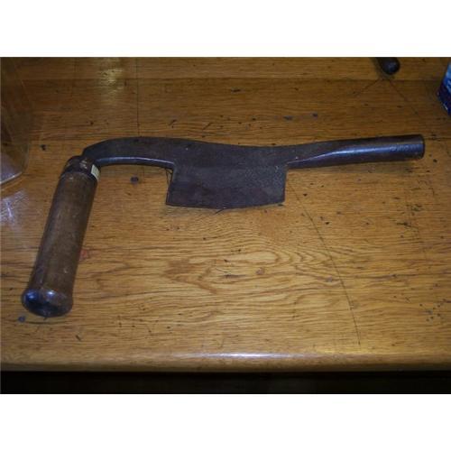 I know very little about old tools but a nice gentleman told me this is known as a Coopers tool.It is some type of draw knife in very good condition.Does have an oval with a name in it that I can not make out.