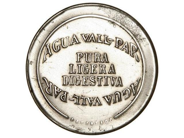 COOPERATIVE AND ADVERTISING TOKENS - 10 Céntimos. S/F. AGUA VALL-PAR, PURA, LIGERA, DIGESTIVA. Al. Ø 36 mm. (Leves rayitas. Pequeñas oxidaciones). RARA. L-No cat. MBC+.