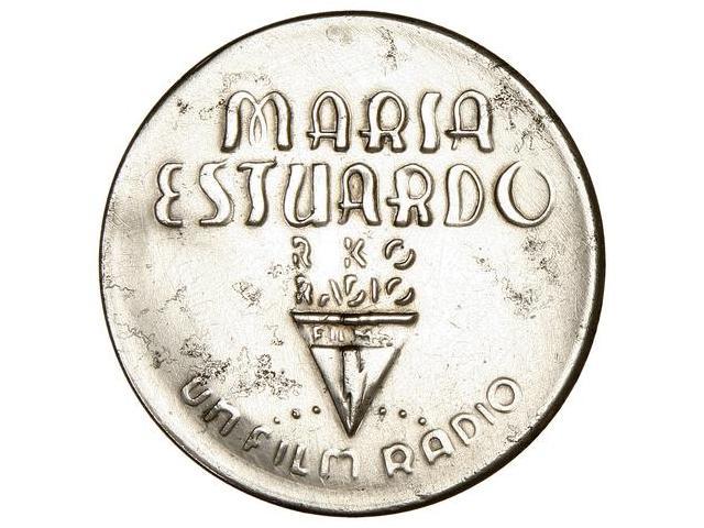 COOPERATIVE AND ADVERTISING TOKENS - 10 Céntimos. S/F. MARÍA ESTUARDO. RKO RADIO FILMS. BARCELONA. Al. Ø 36 mm. Disco de aluminio con sello del Cid en reverso. (Ligeramente alabeada). MUY RARA. L-1394. MBC+.