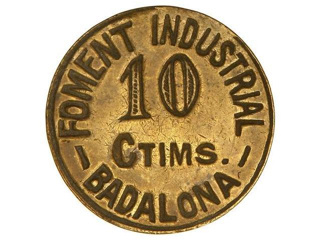 COOPERATIVE AND ADVERTISING TOKENS - 10 Cèntims. S/F. FOMENTO INDUSTRIA BADALONA. Latón. RARA. AL-759. MBC+.