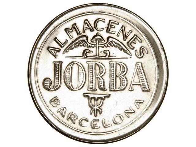 COOPERATIVE AND ADVERTISING TOKENS - 15 Céntimos. S/F. ALMACENES JORBA. BARCELONA. Al. Ø 36 mm. Disco de aluminio con sello del Cid en reverso. ESCASA. L-1387. EBC-.