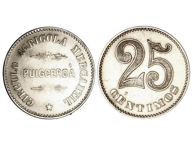 COOPERATIVE AND ADVERTISING TOKENS - 25 Céntimos. S/F. CÍRCULO AGRÍCOLA MERCANTIL. PUIGCERDÀ. Ni. Ø 28 mm. RARÍSIMA. L-2806v. MBC+.