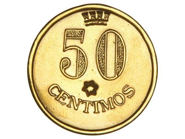 COOPERATIVE AND ADVERTISING TOKENS - 50 Céntimos. Guerra Civil. FRONTON TXIKI-ALAI. BARCELONA. Latón. Ø 27 mm. Encima y debajo del número contramarcas: una corona y una estrella de seis puntas. L-No cat. EBC.