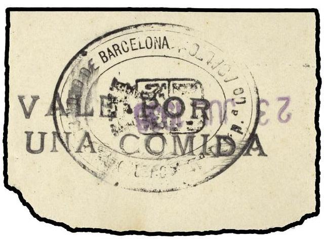 COOPERATIVE AND ADVERTISING TOKENS - Vale por una comida. 23 Julio 1936. 14º GRUPO DE ASALTO-CUERPO DE SEGURIDAD BARCELONA. (Cortes irregulares). MUY RARO. L-3660. EBC.