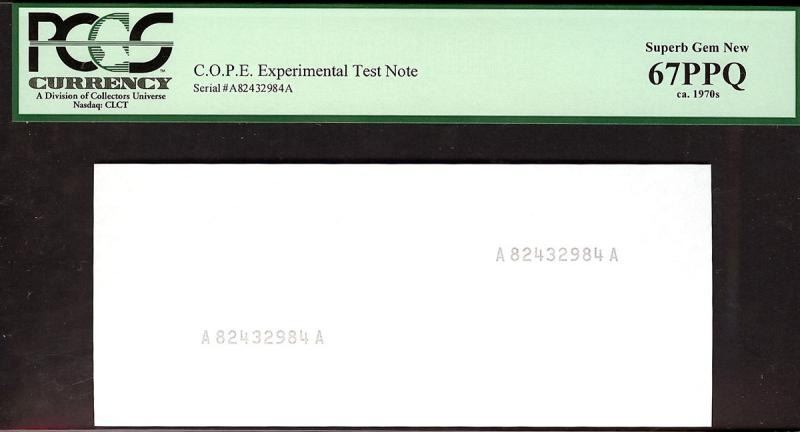 One COPE Experimental Test Note PCGS 67PPQ.