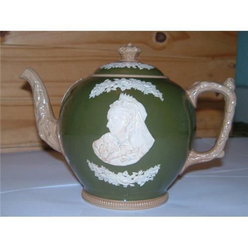 RARE VICTORIAN COPELAND SPODE QUEEN VICTORIA DIAMOND JUBILEE TEAPOT DATED 1897 .
