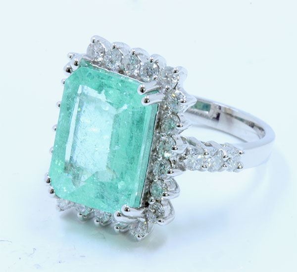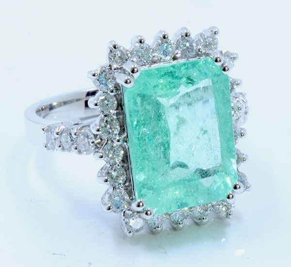 COPPER BEARRING PARAIBA TOURMALINE 6.15CT, 14K W/G RING 7.20GRAM / DIAMOND 1.05CT