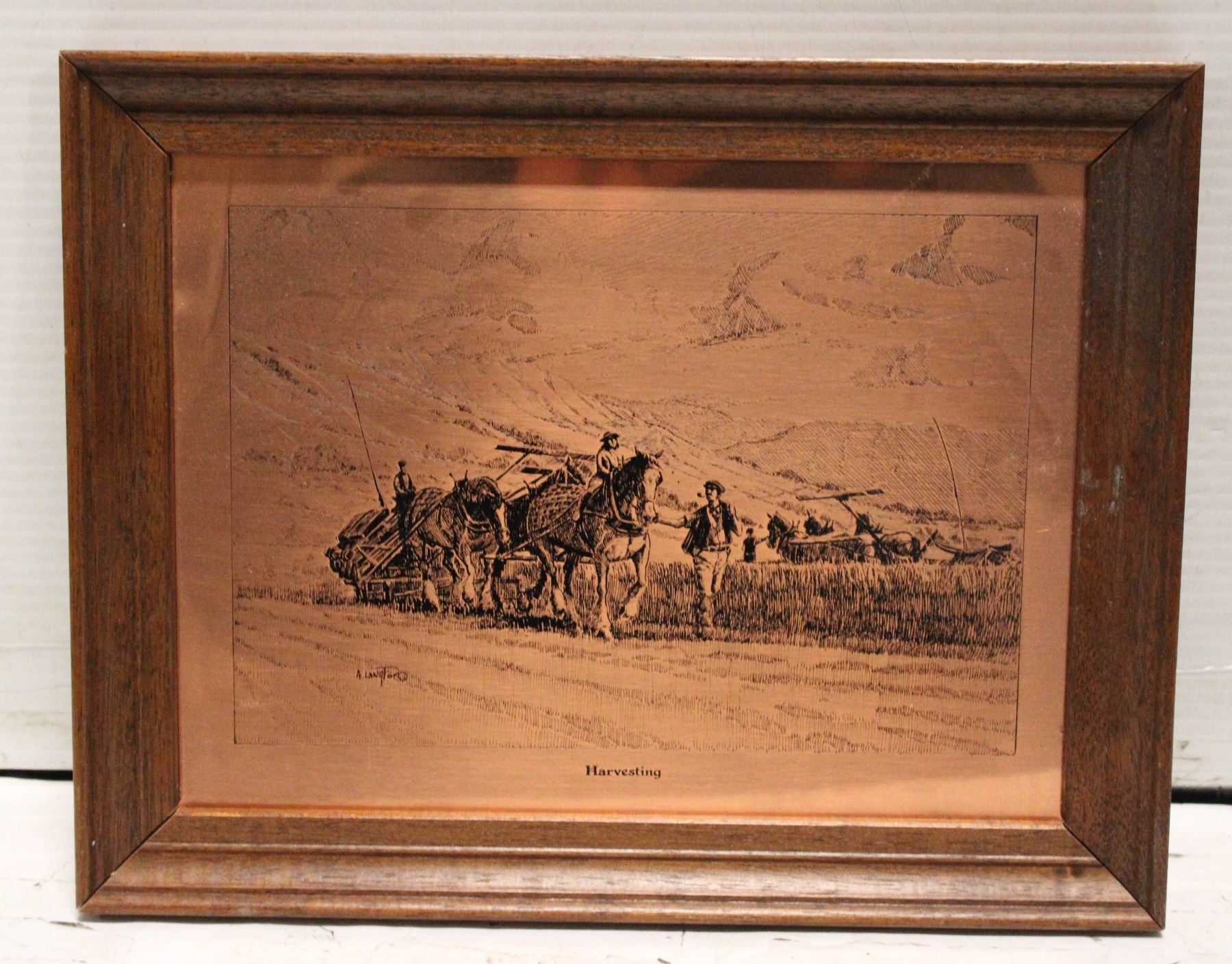 COPPER ETCHED PIC. SIGNED A. LANGFORD "HARVESTING